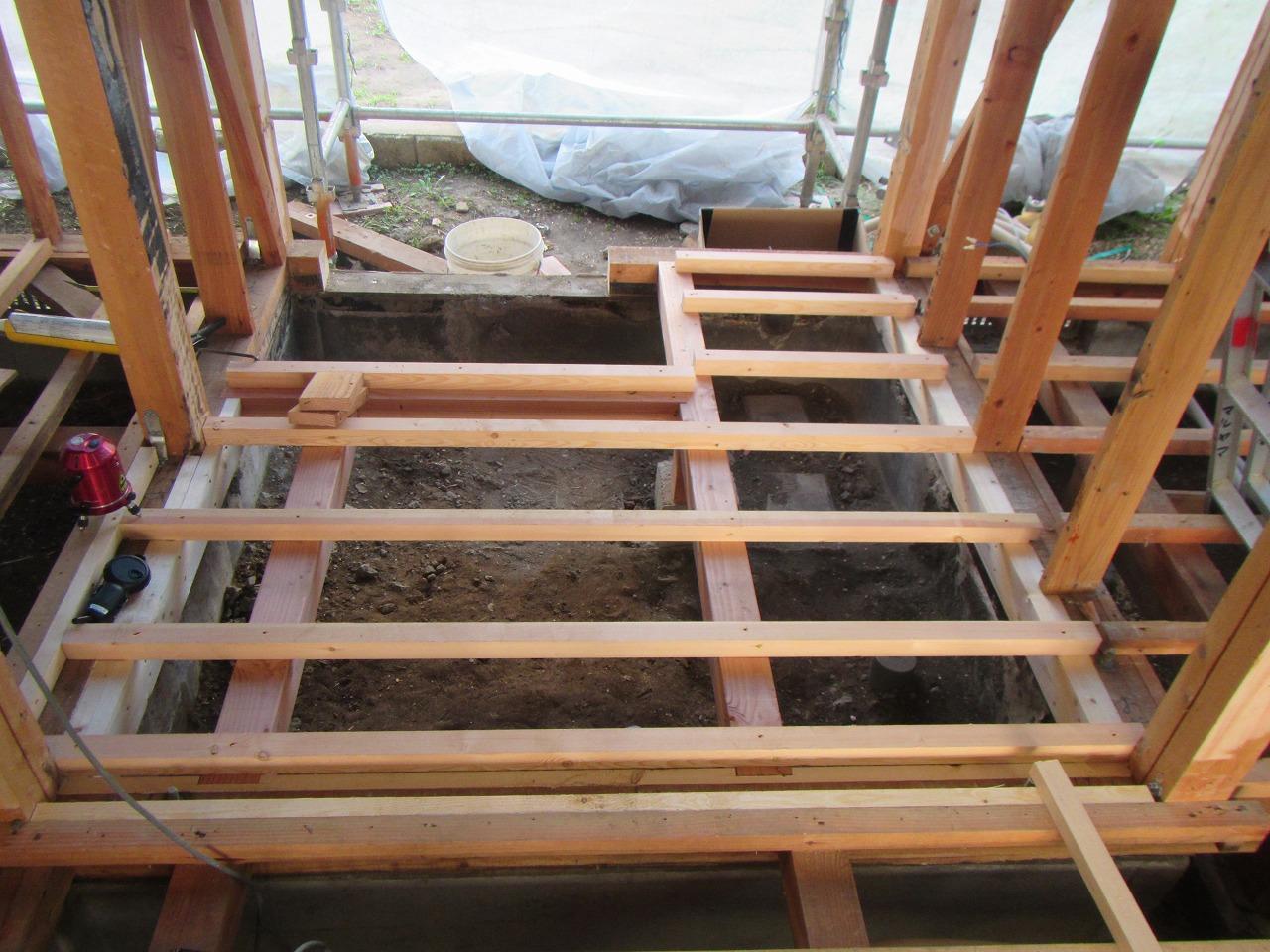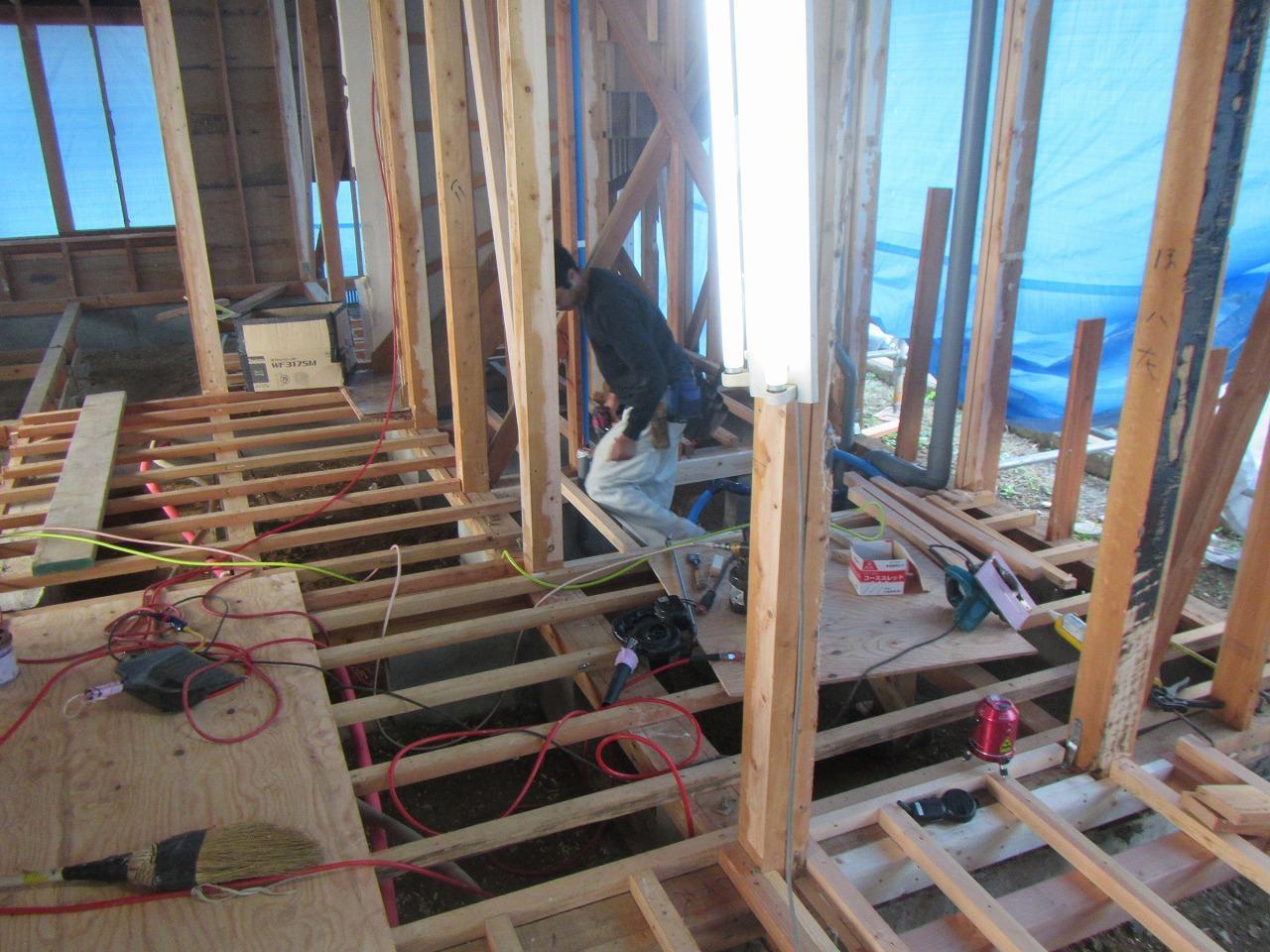 いい仕事をしてくれる大工さん↓ 既存のお風呂部分の補強状況↓