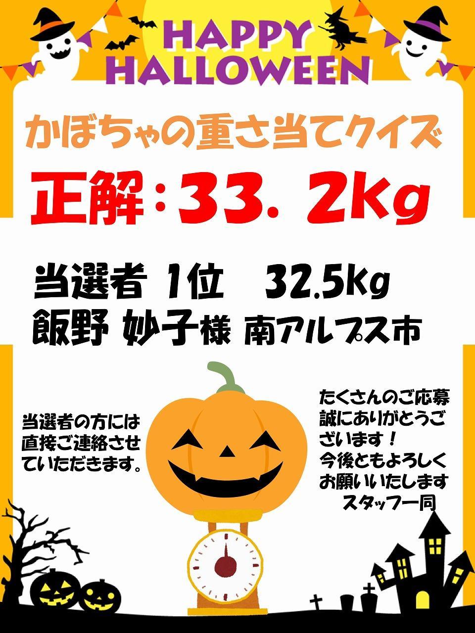 実施していましたかぼちゃの重さ当てクイズ、想像以上に好評を頂きよかったです。