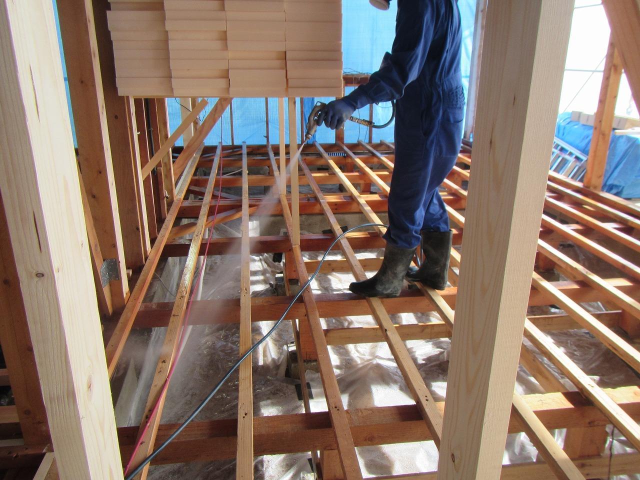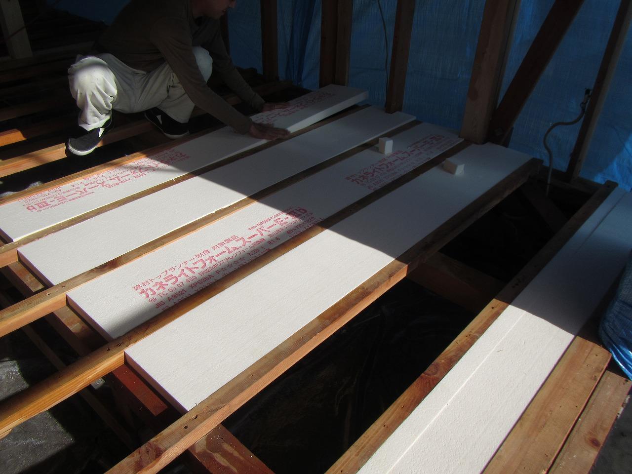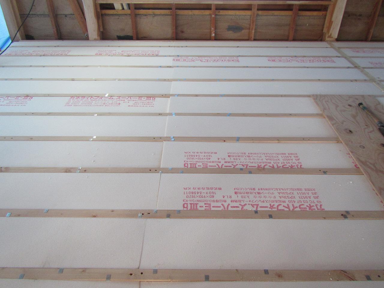 大工工事の方は床下地組→床下断熱材敷設→床板の捨て貼りまで終わりました( ^^) _U~~