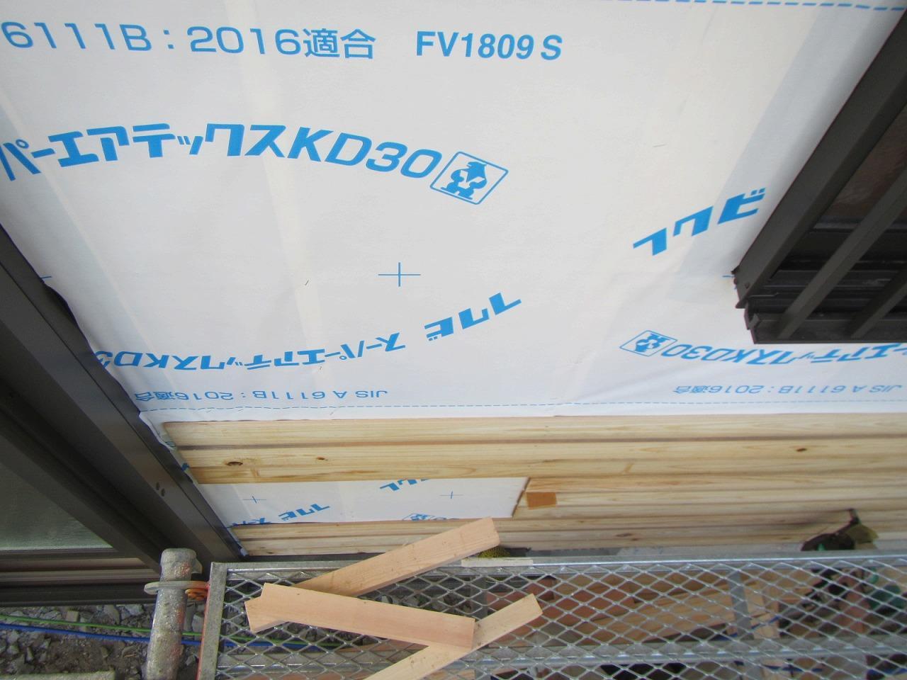 現在は外壁のモルタル下地のザラ板の取付が完了しています。外部の工事の次の出番は左官屋さんです。