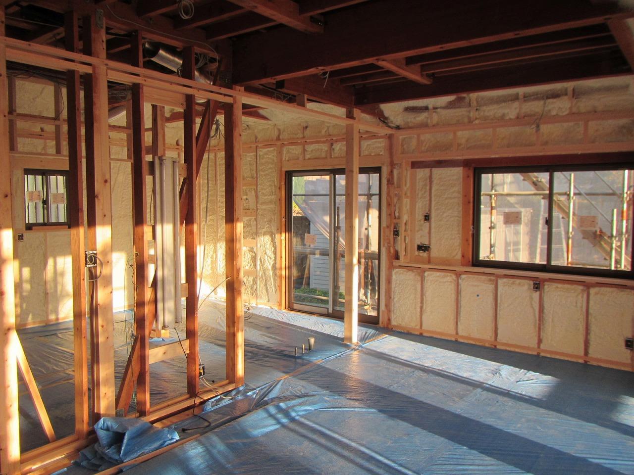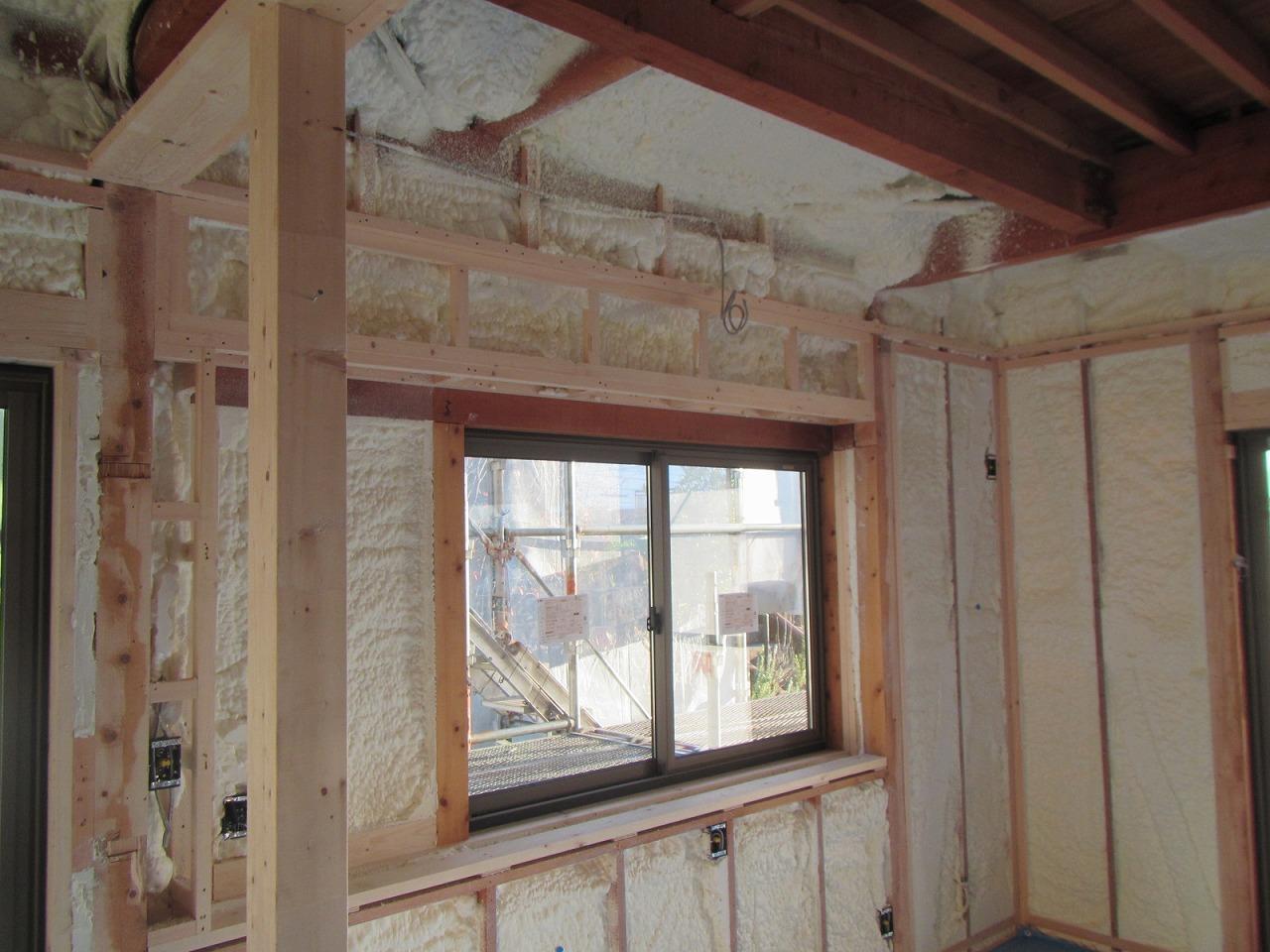 内部の工事は先日ウレタンの吹付け断熱を施工しました。これで夏は涼しく、冬は暖かくなると思います。
