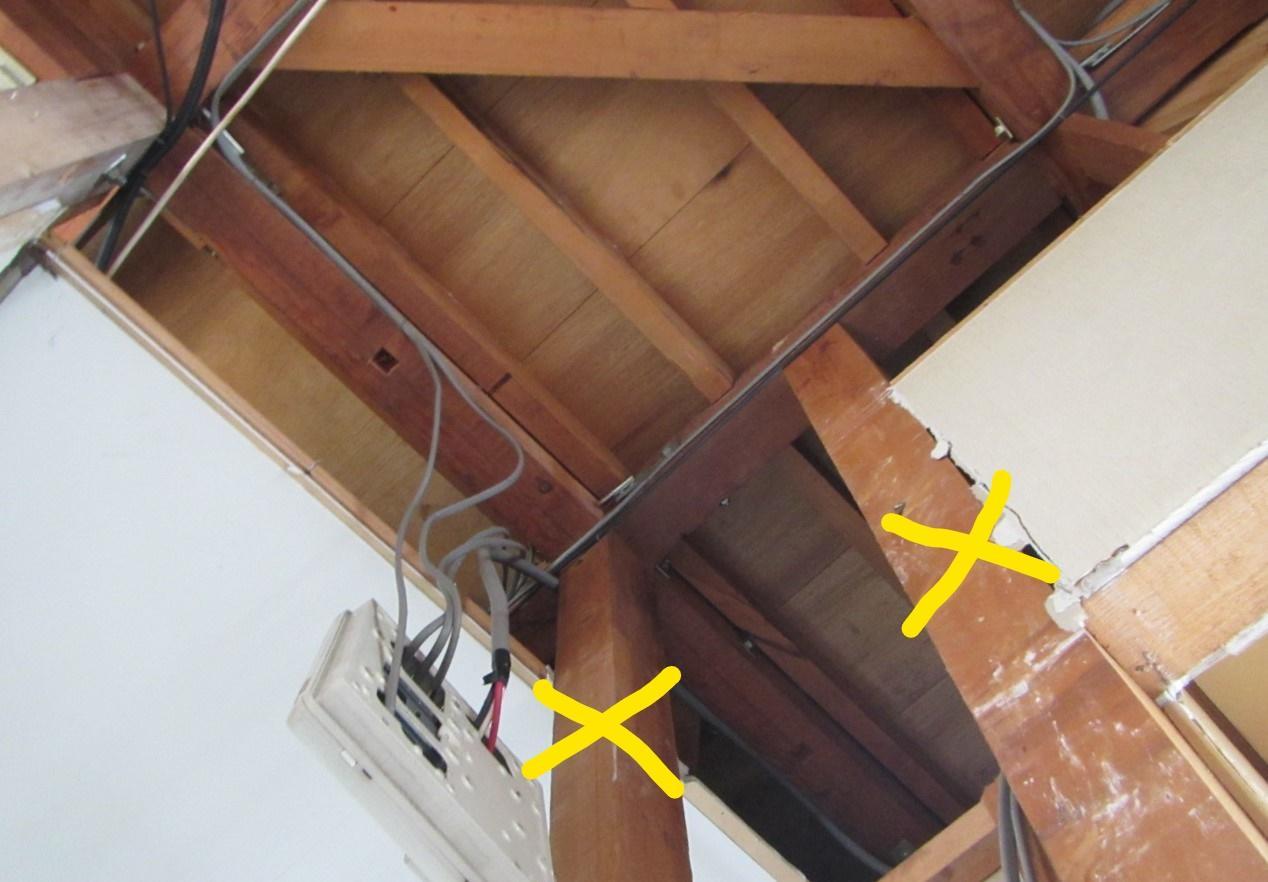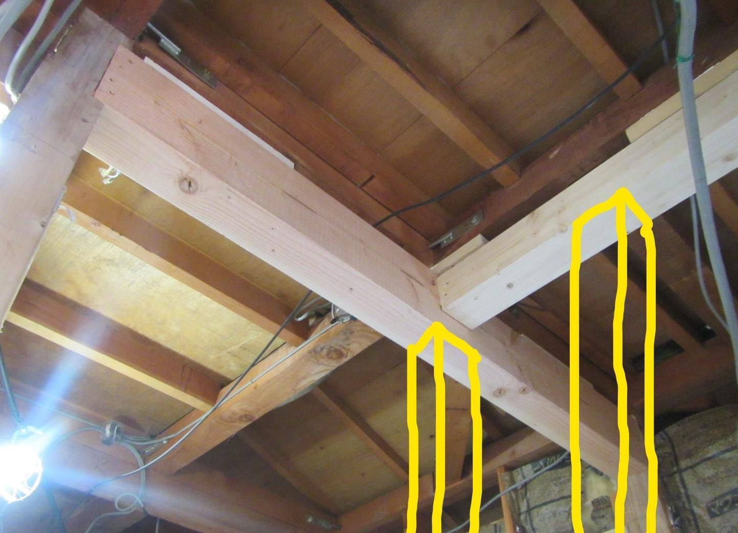 ↑間取り変更のため柱を2本外したところには、太い梁が補強で入りました。