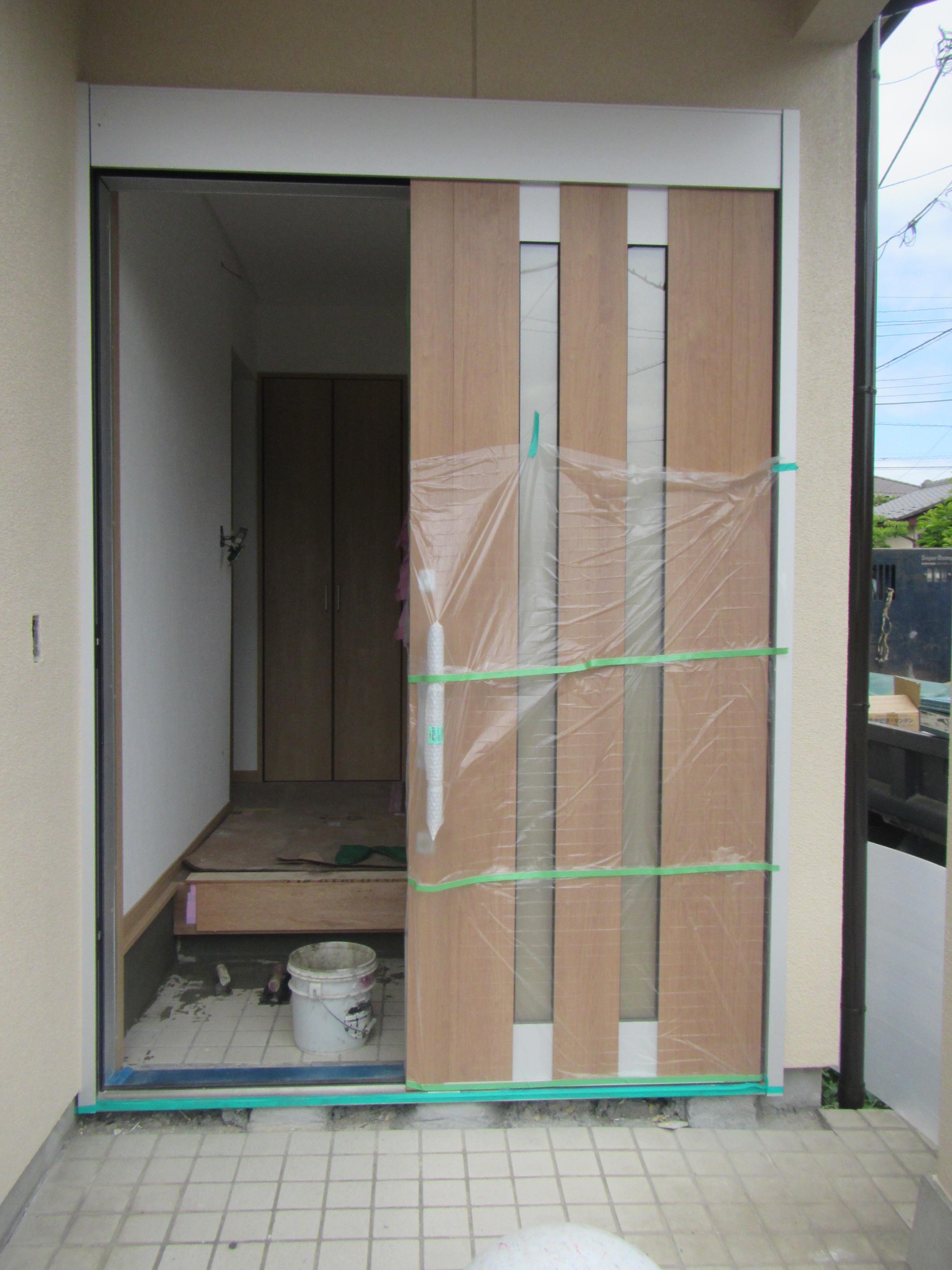 ↑新しい扉がお目見えしました。以前は開き戸でしたが今度は引き戸になりました。