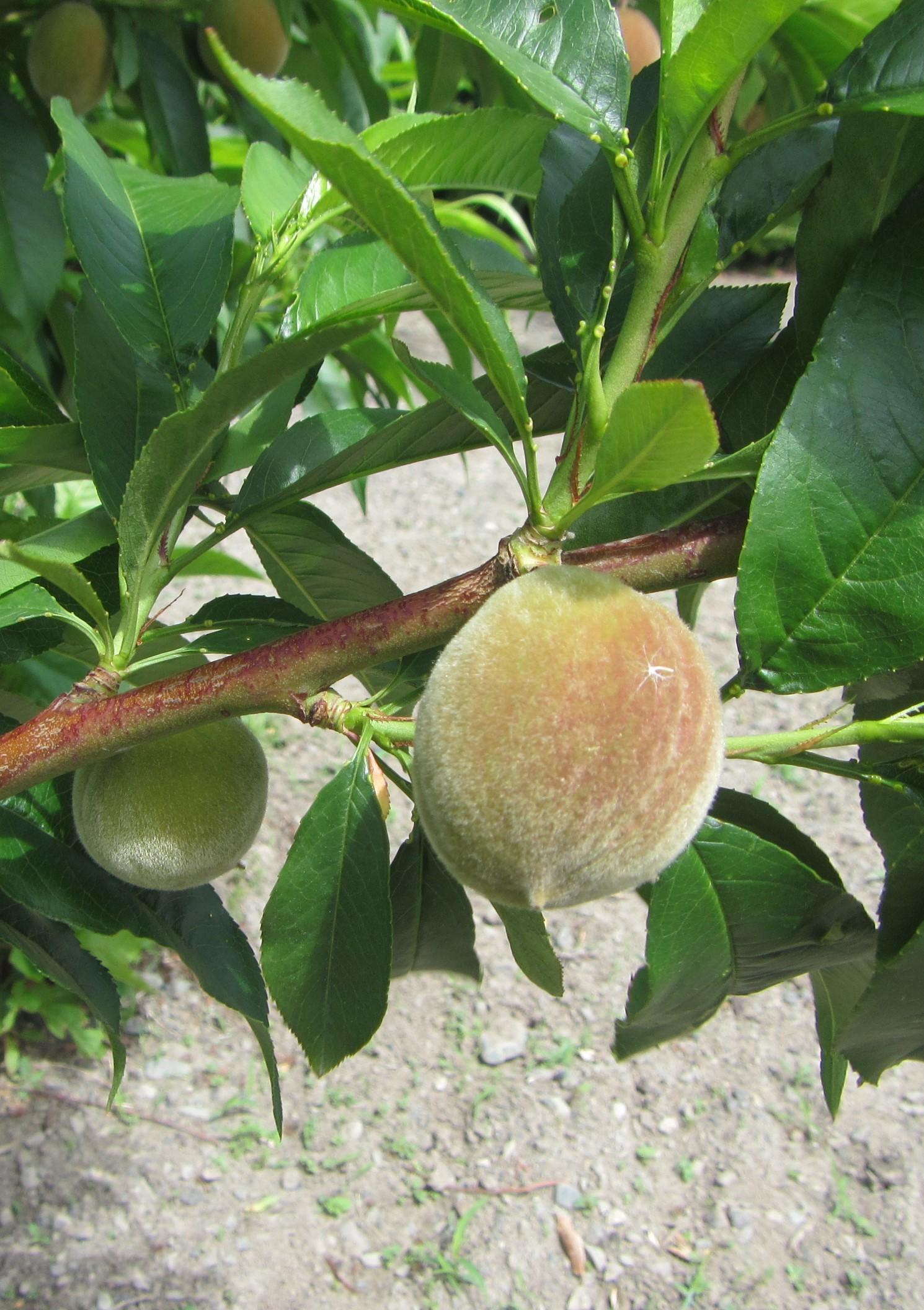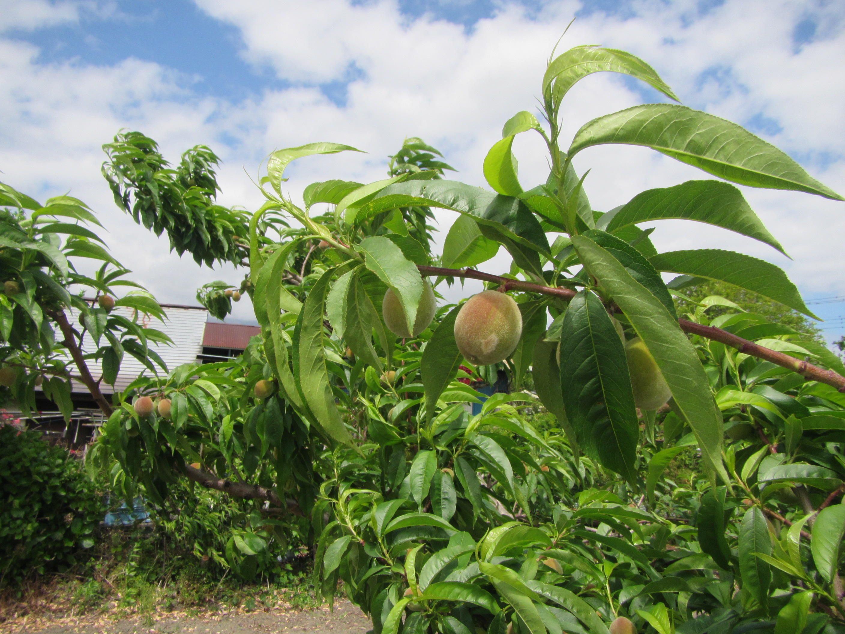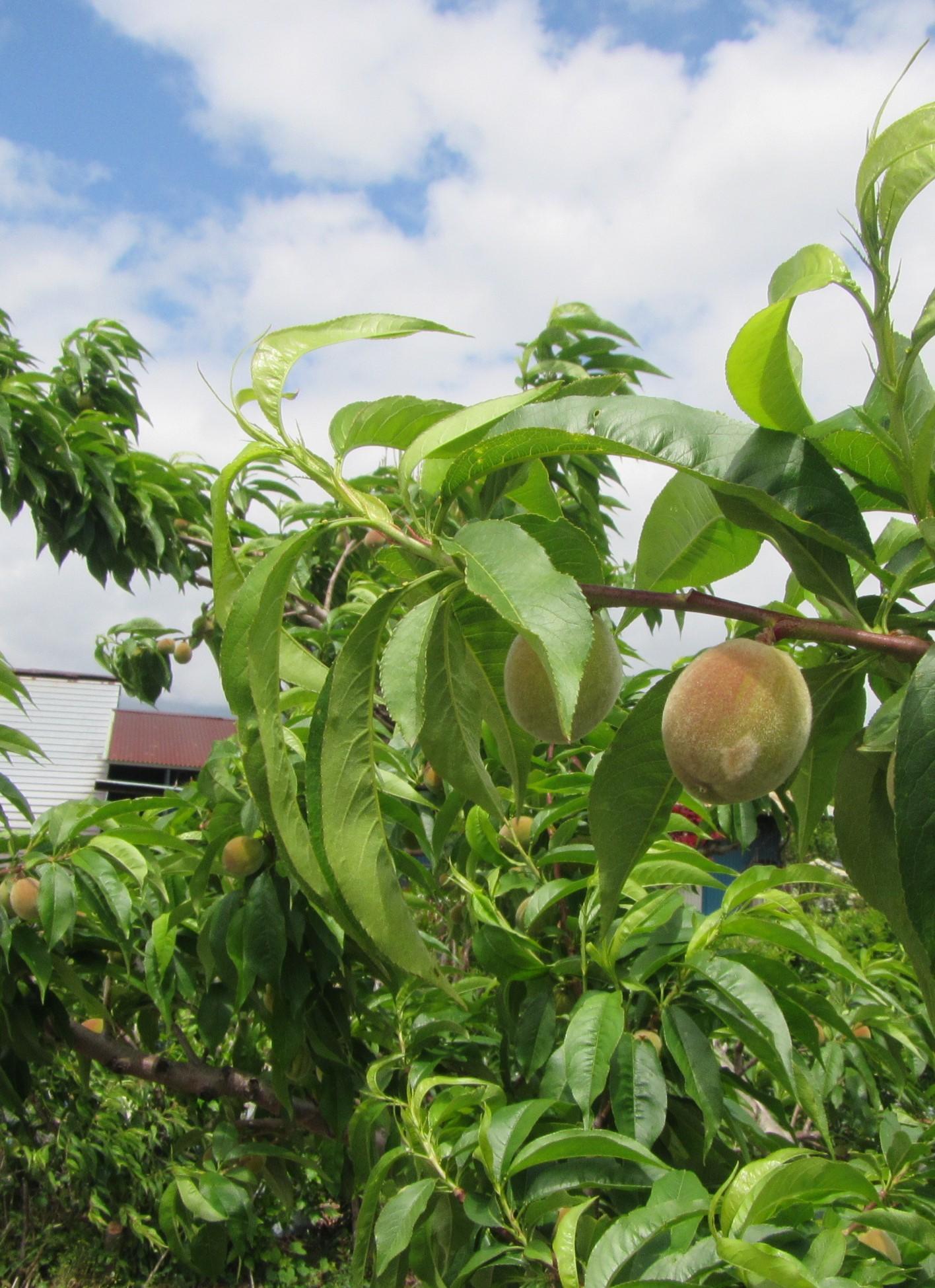 ↑桃の実も大きくなってきました。5~6cmくらいでしょうか。