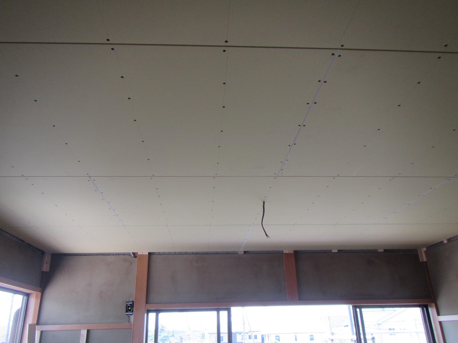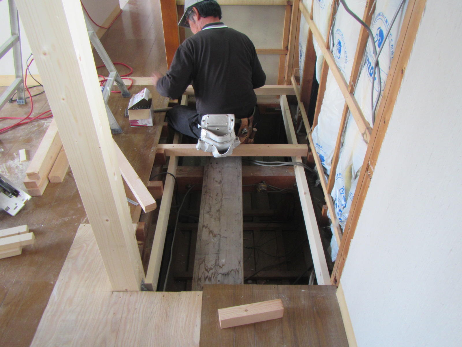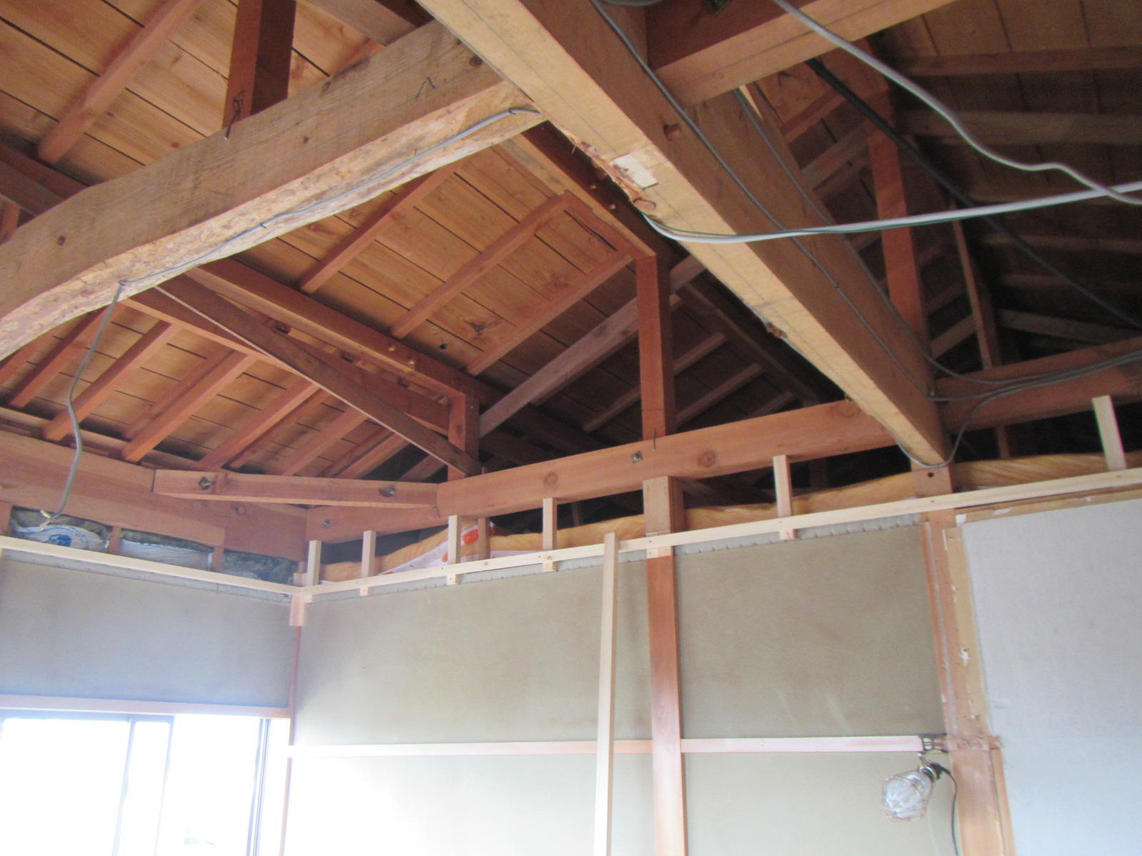 現在断熱材のグラスウールを入れながら下地工事がどんどん進んでおります( ^^) _U~~