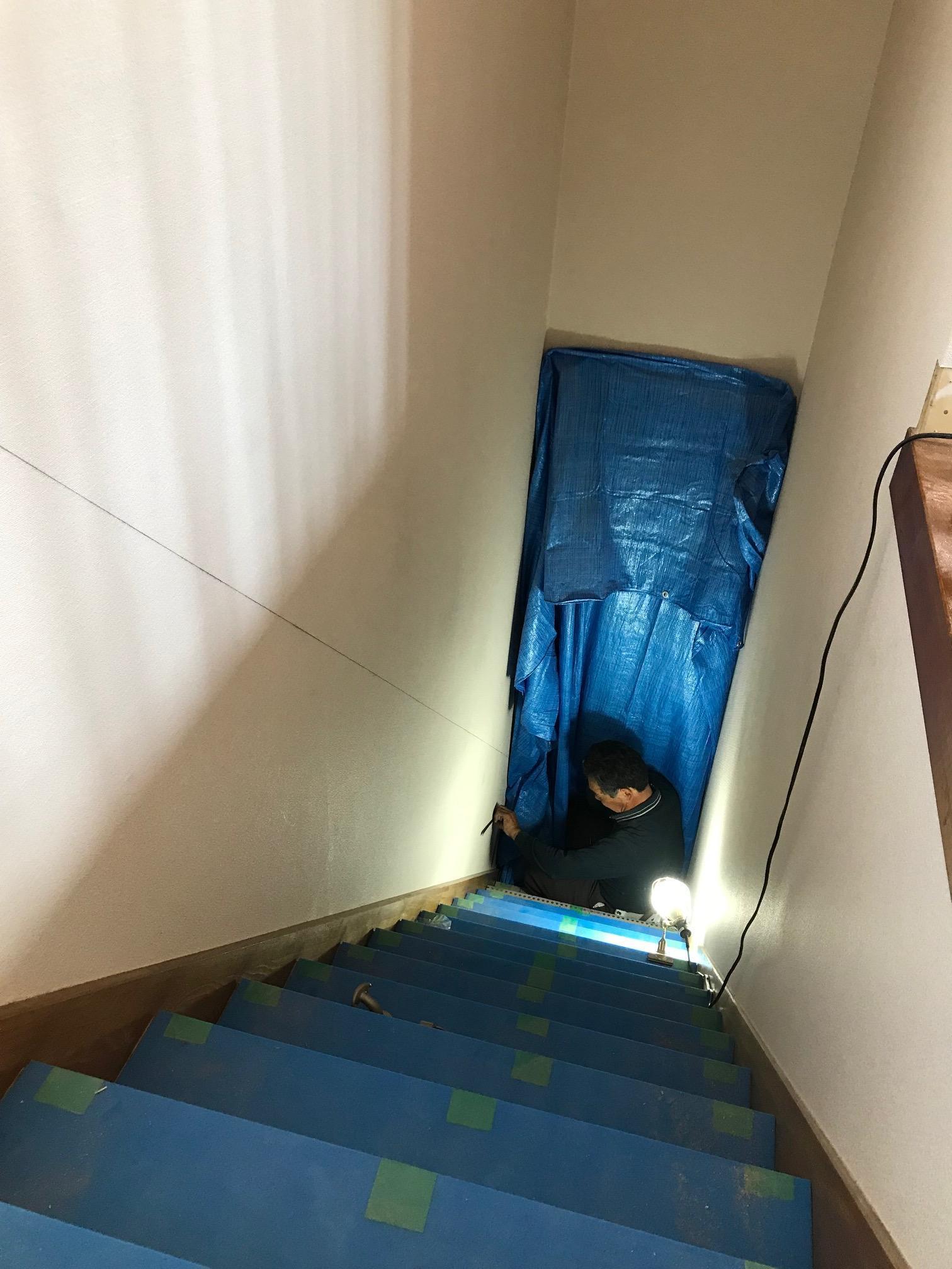 ↑と思ったら階段手すりを取り付けるための墨出し中でした。