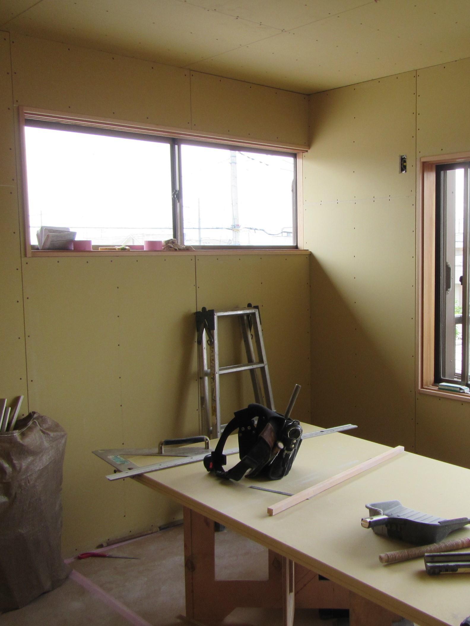 来週は内装工事で、天井と壁のクロス貼りが始まります。