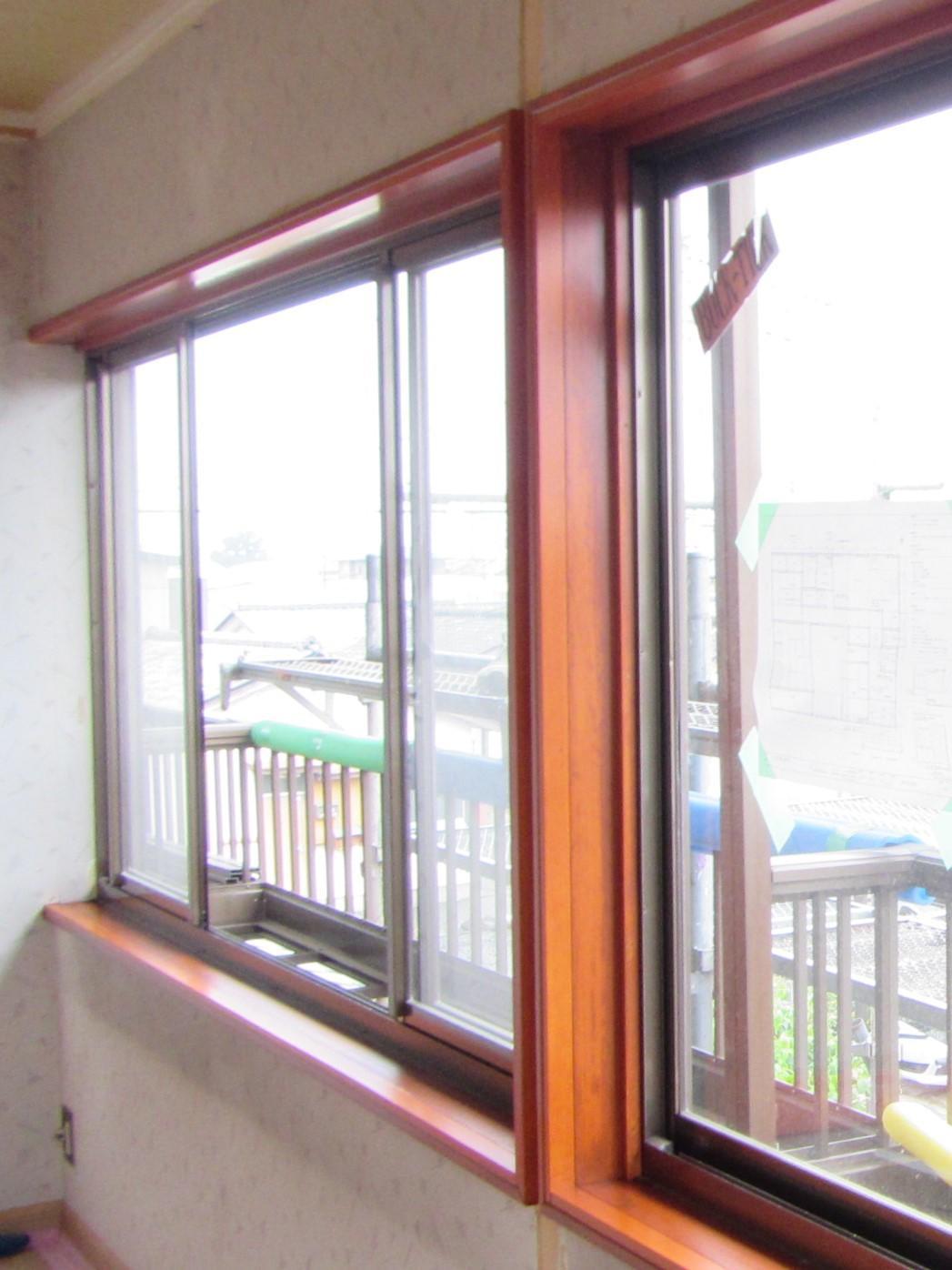 窓には後ほどインプラス(内窓)を取り付けるため、既存窓枠の段差を木材で埋め、塗装をして仕上げました。