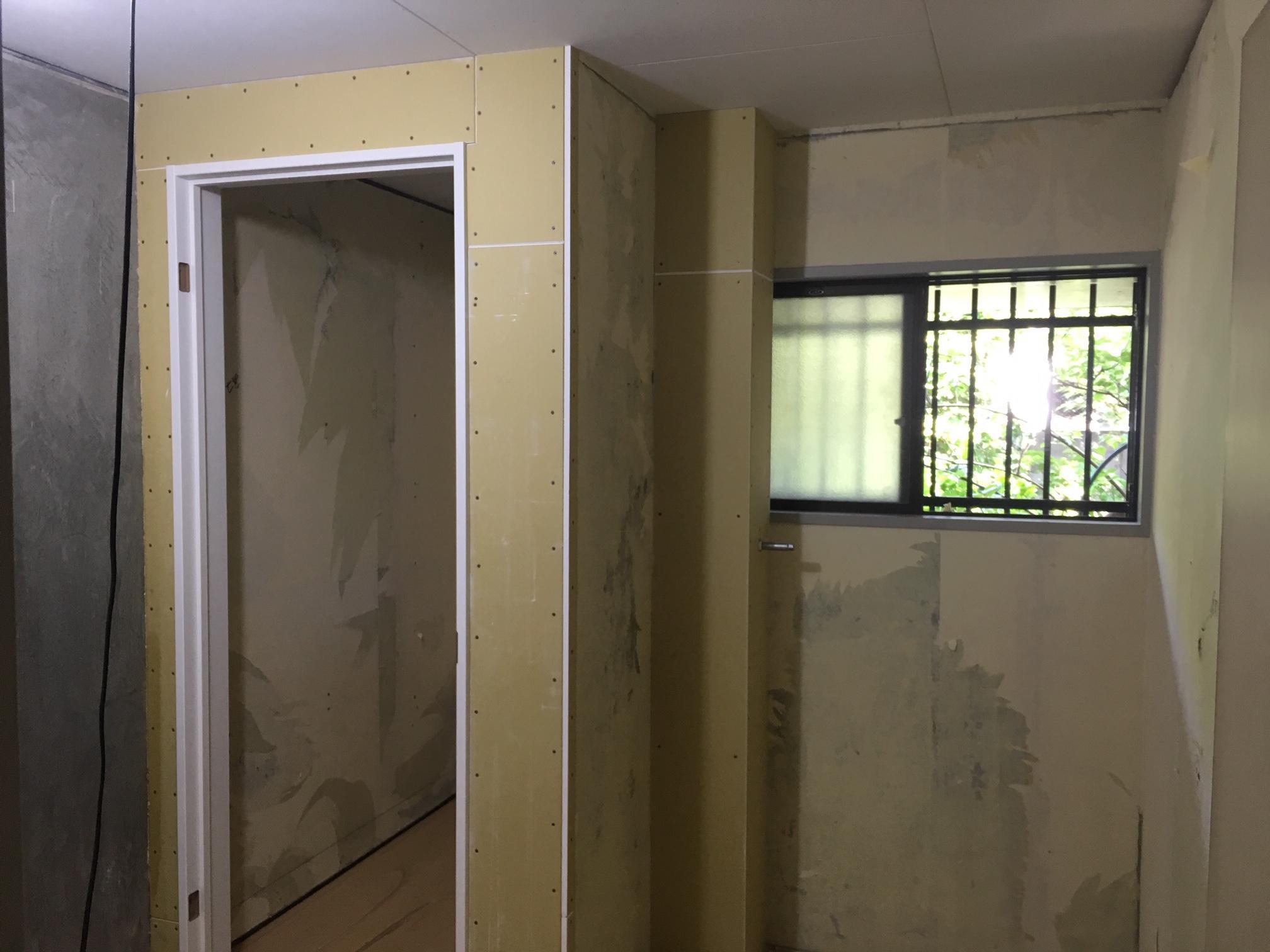 パウダールームは大工さんの下地工事がおわり、仕上工事となるタイル屋さんにバトンタッチです!