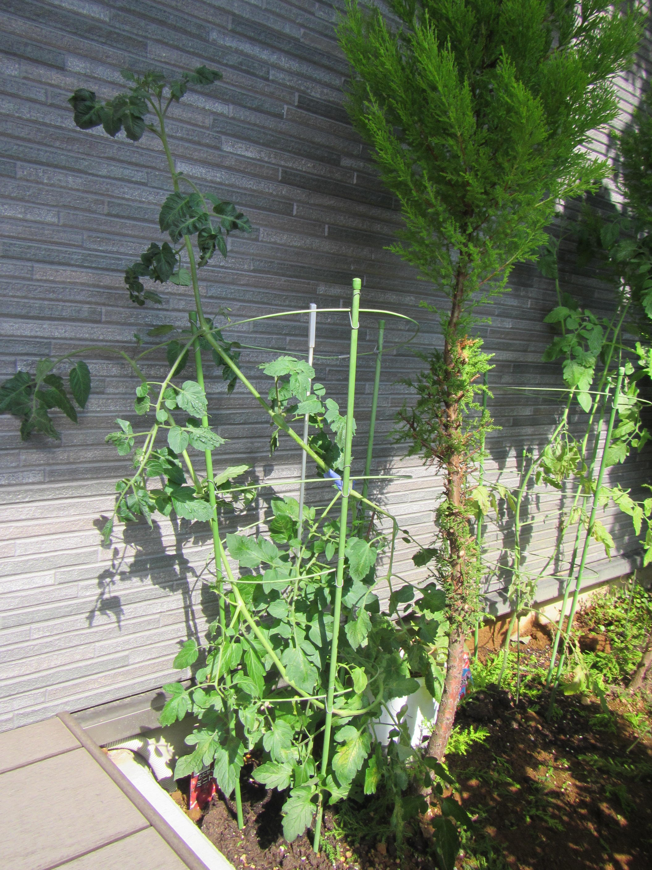 ↑昨日は甲斐店のガーデンを整えまして、育ってきたトマトにも支柱がつけられました!