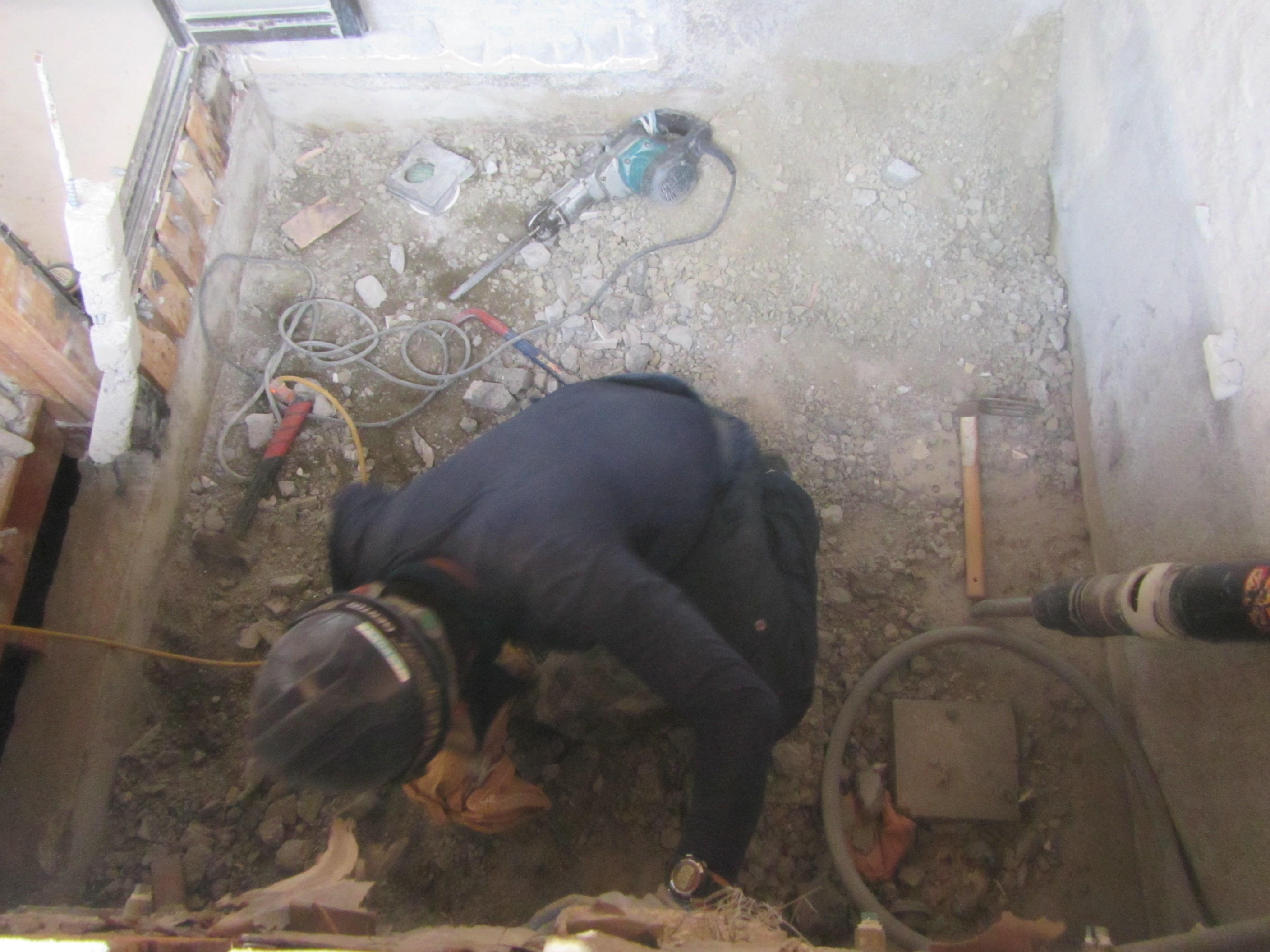 ↑まずは既存の浴室を解体していきます。お施主様が住まいながらの工事ですが、家の裏側が広いので廃材は窓経由で外へ運び出されていきます!
