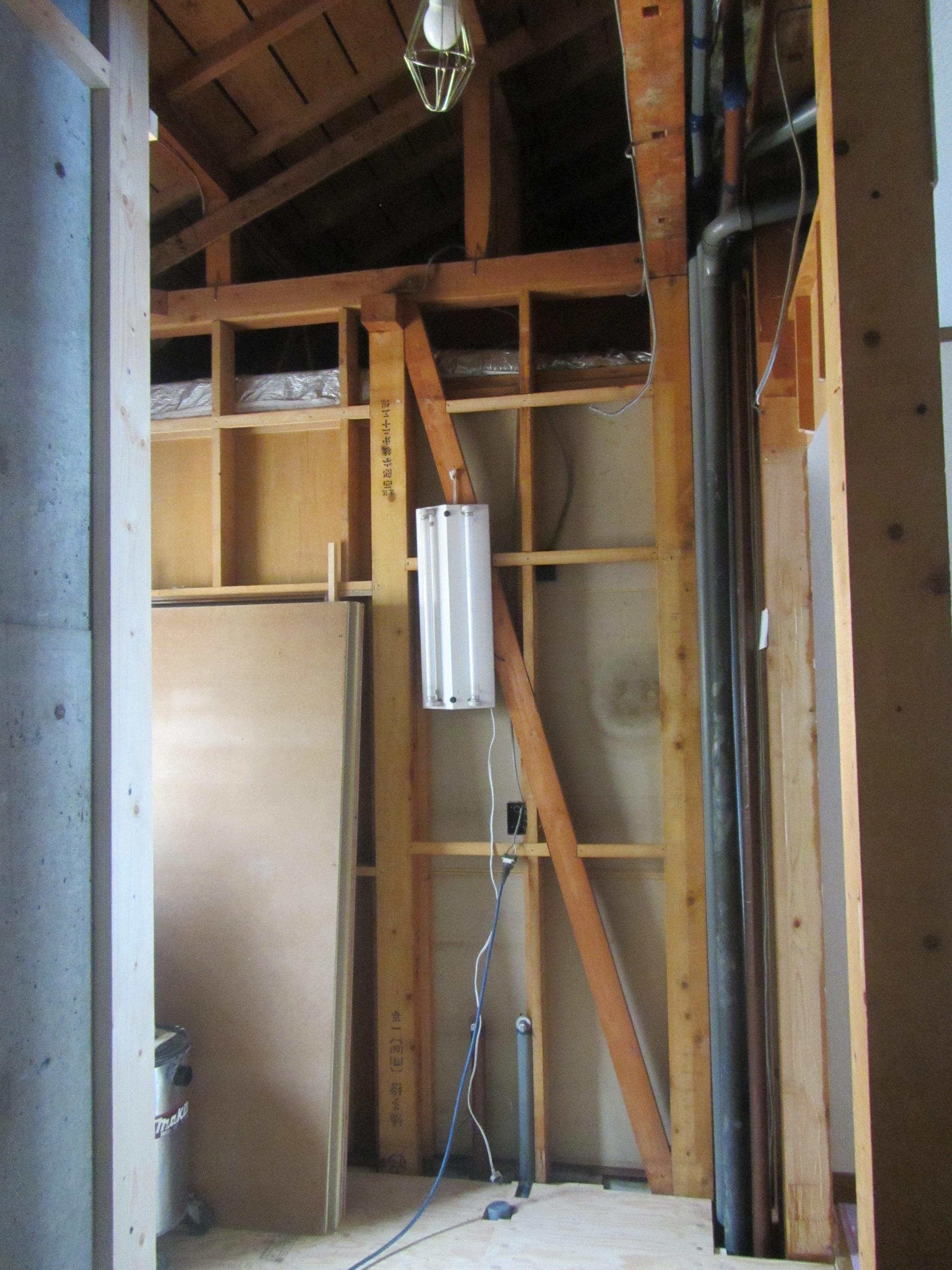 ↑トイレの壁は撤去され、配管がやり直してありました。トイレの向かい側には洗面台が付きます。