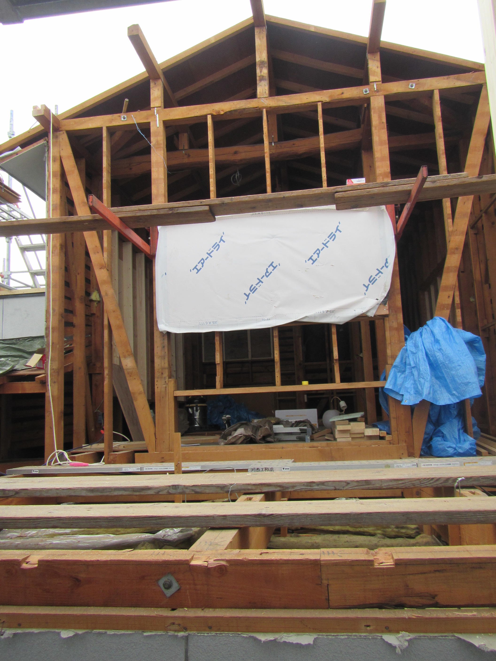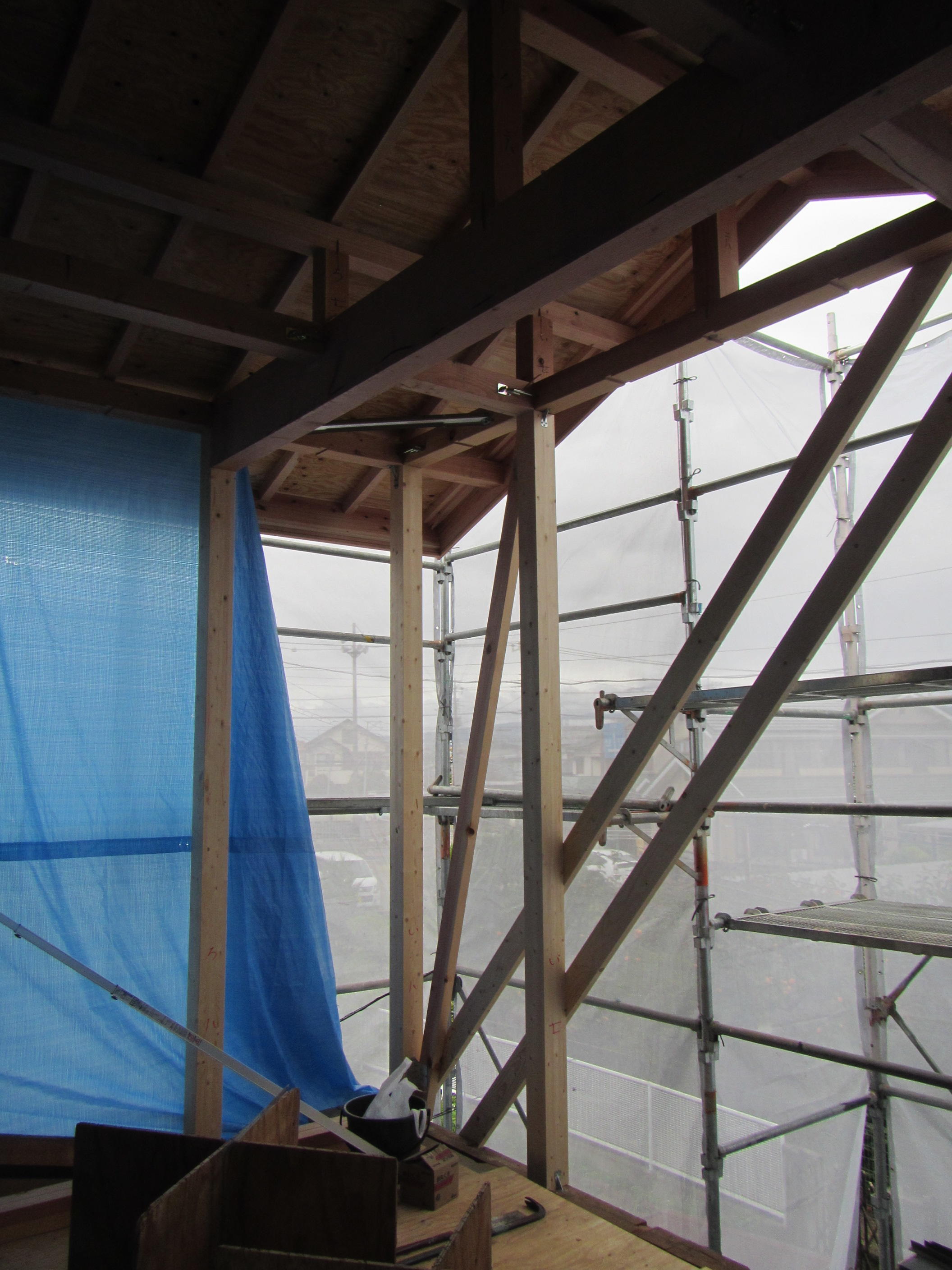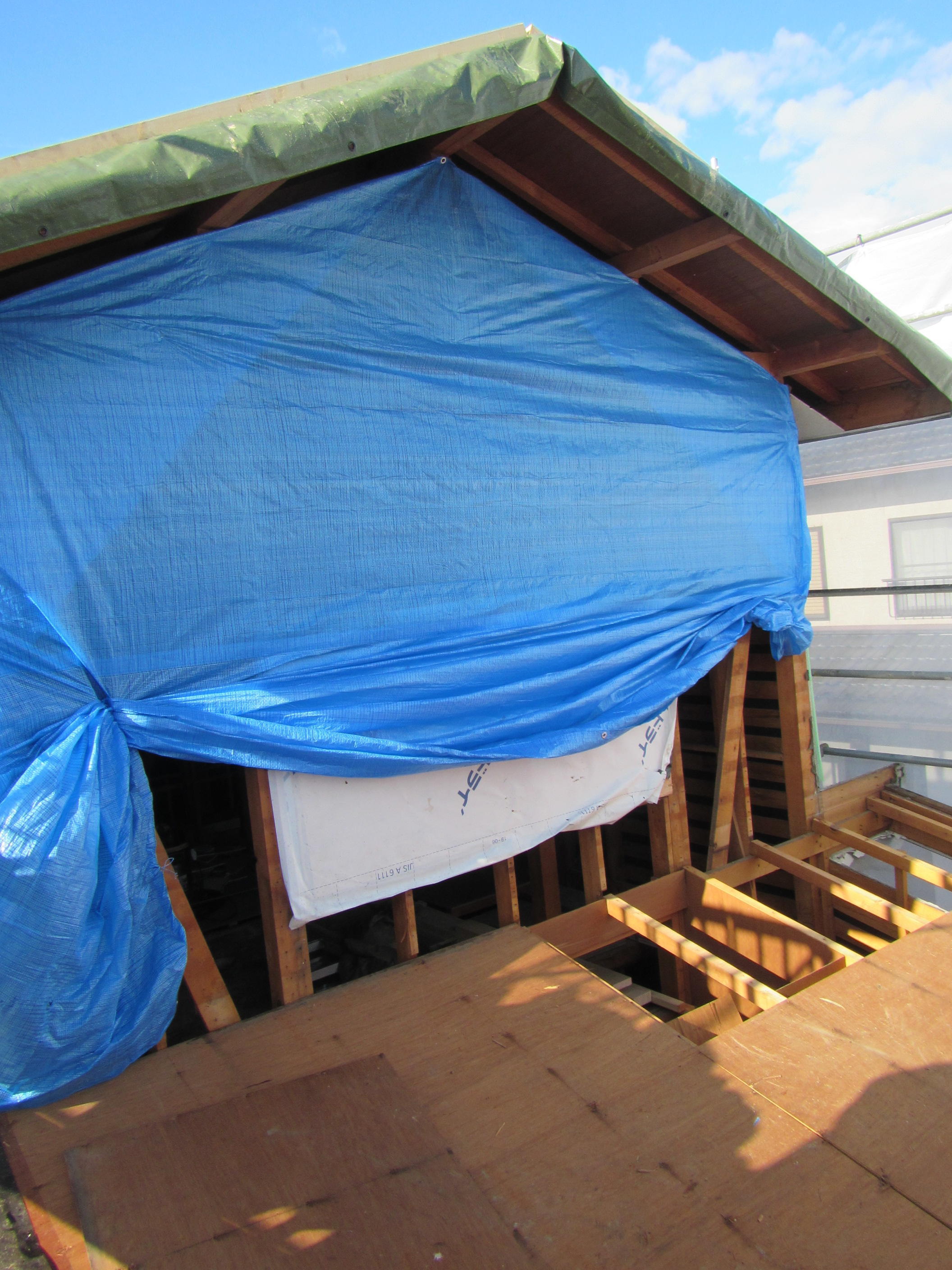 こちらの現場も屋根と外壁がしっかりできるまでは雨風との戦いです。