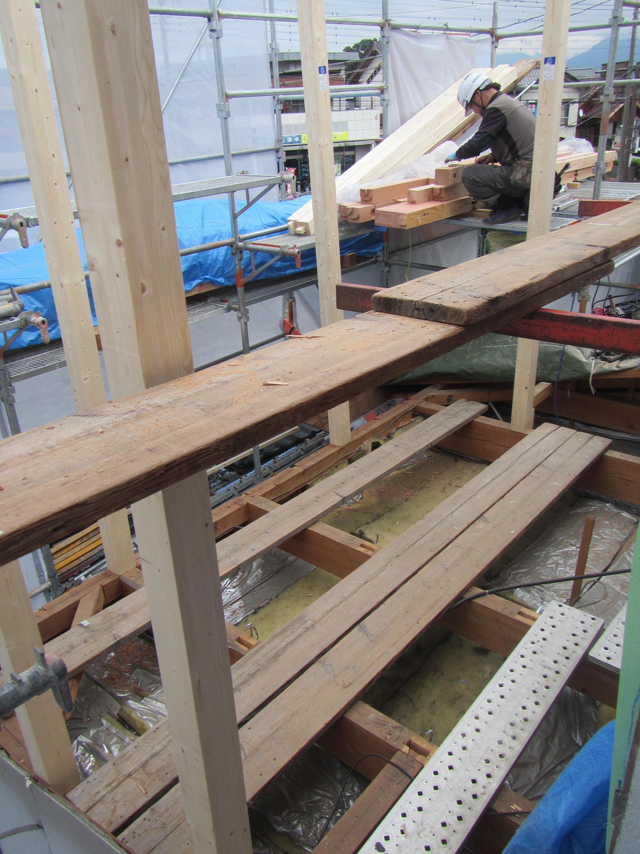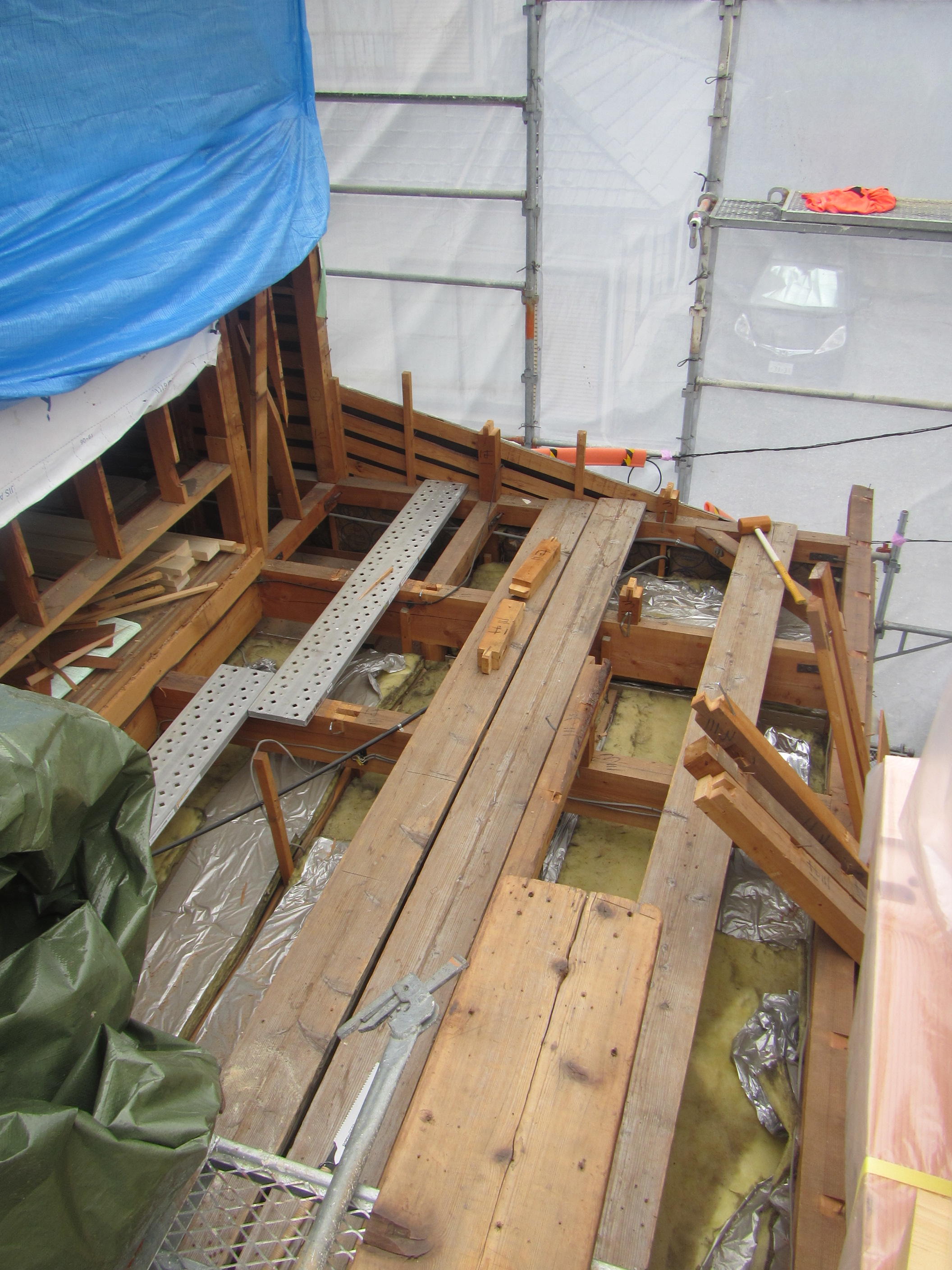 ↑屋根を支えていた束(つか)なども撤去し、ここが床になっていきます。