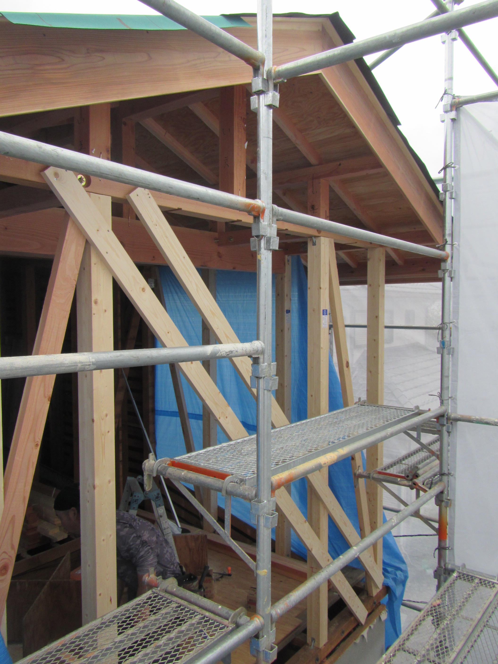 高所での作業と、梁を持ち上げるなど力仕事な作業がまずはひと段落です。