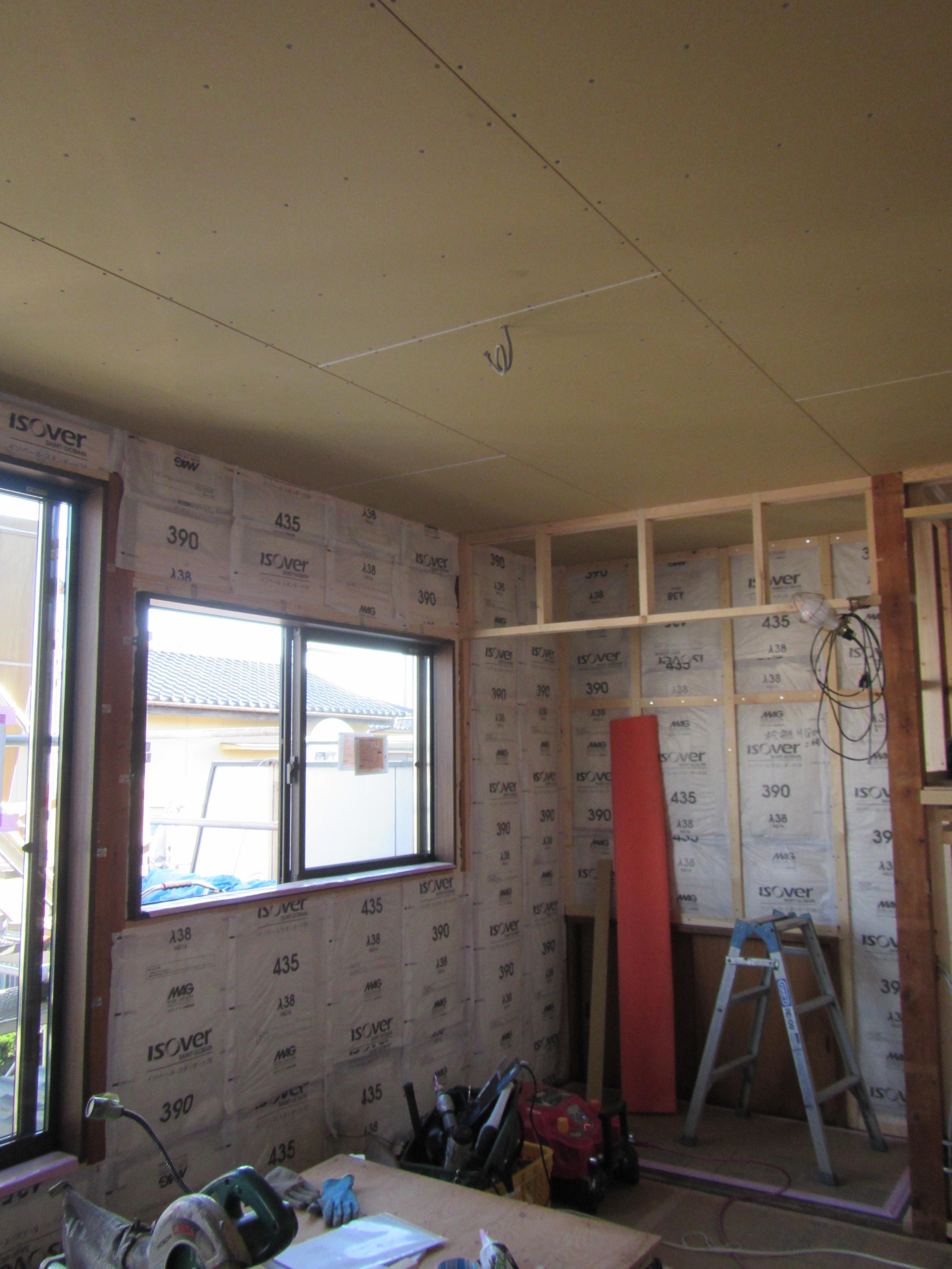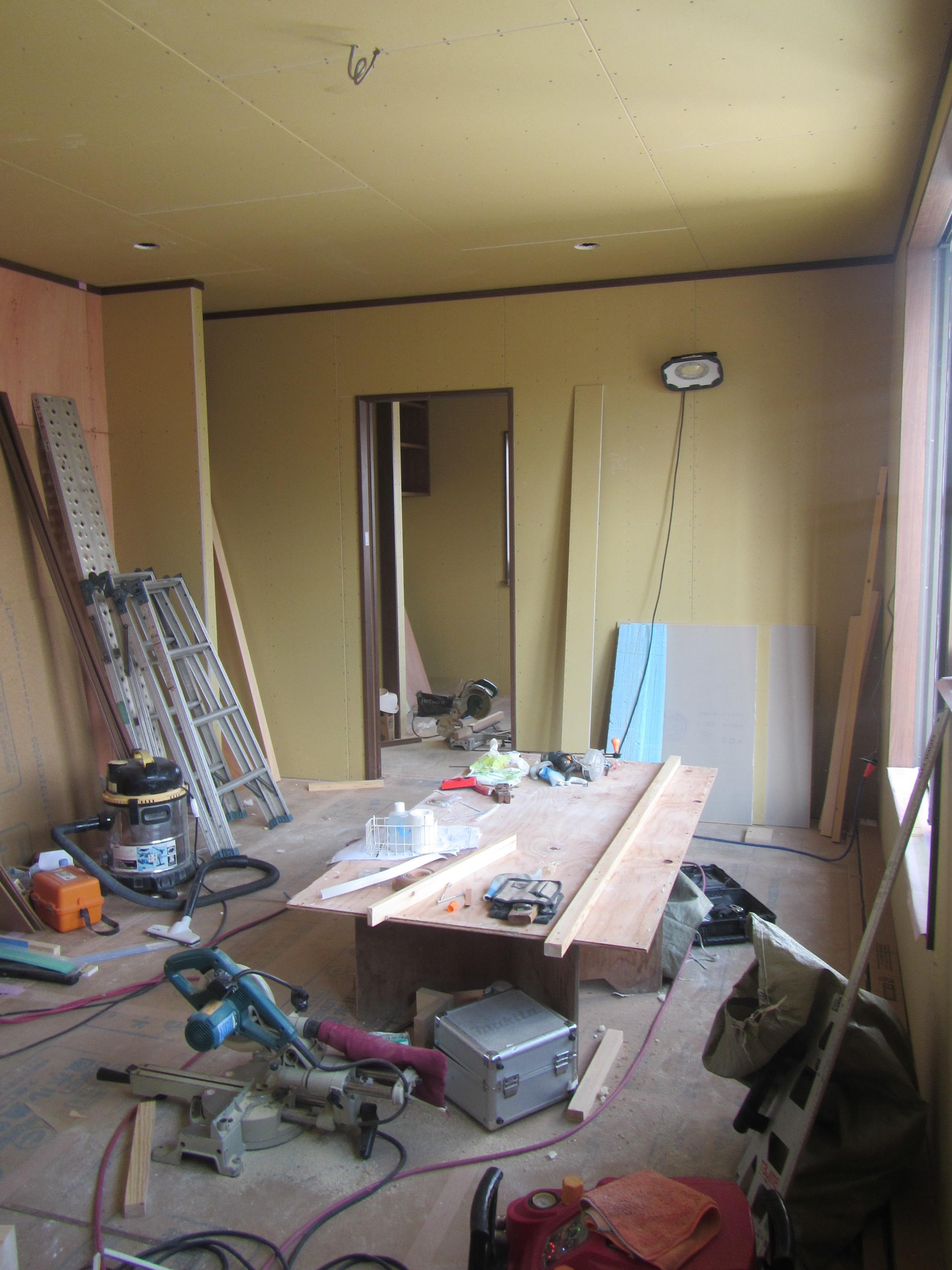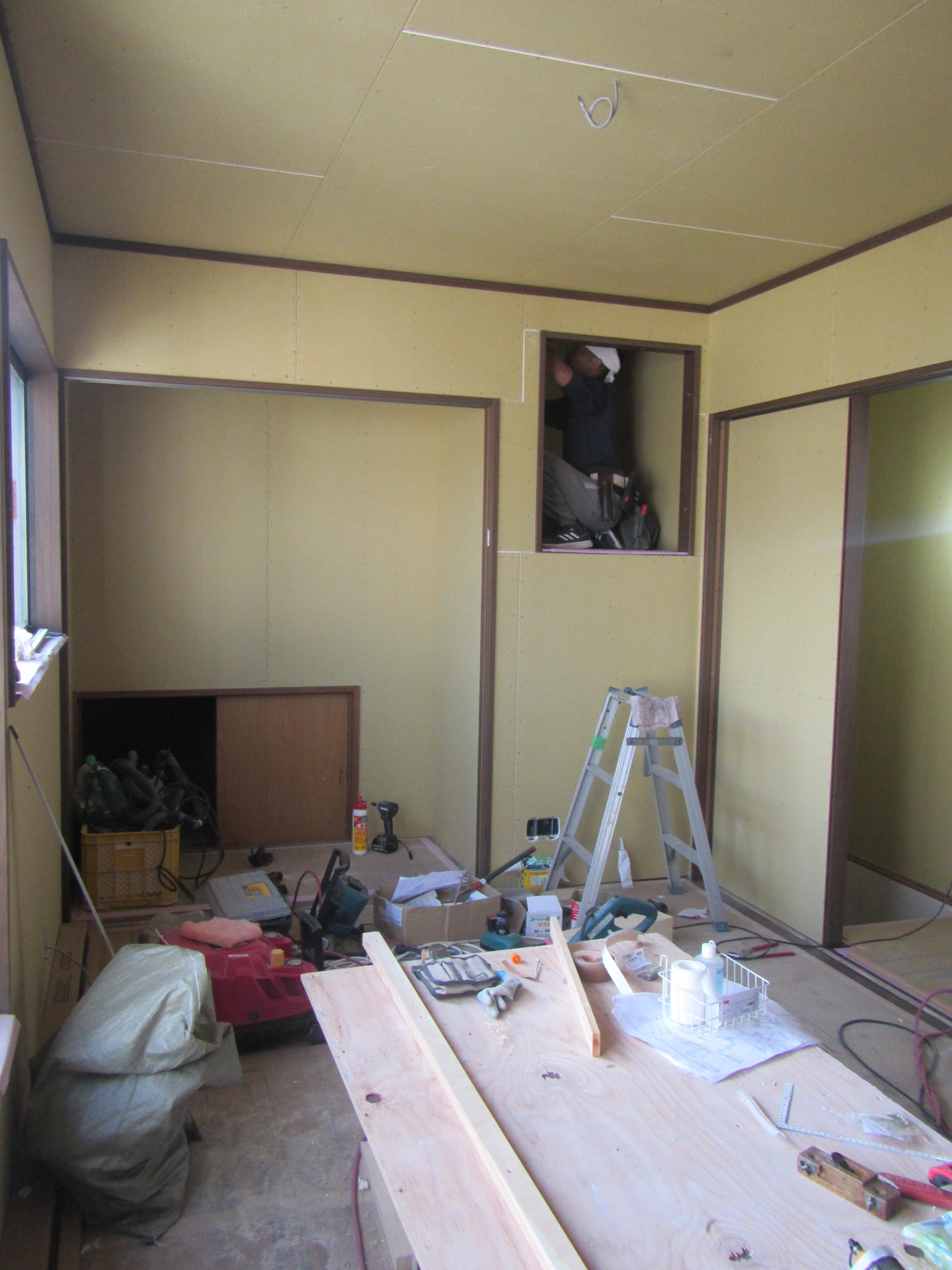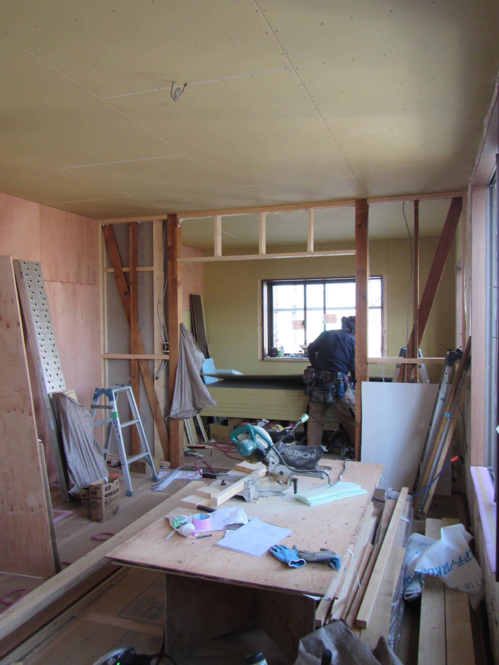 ↑ボードを貼って壁が出来上がってくると空間にメリハリがでますね。