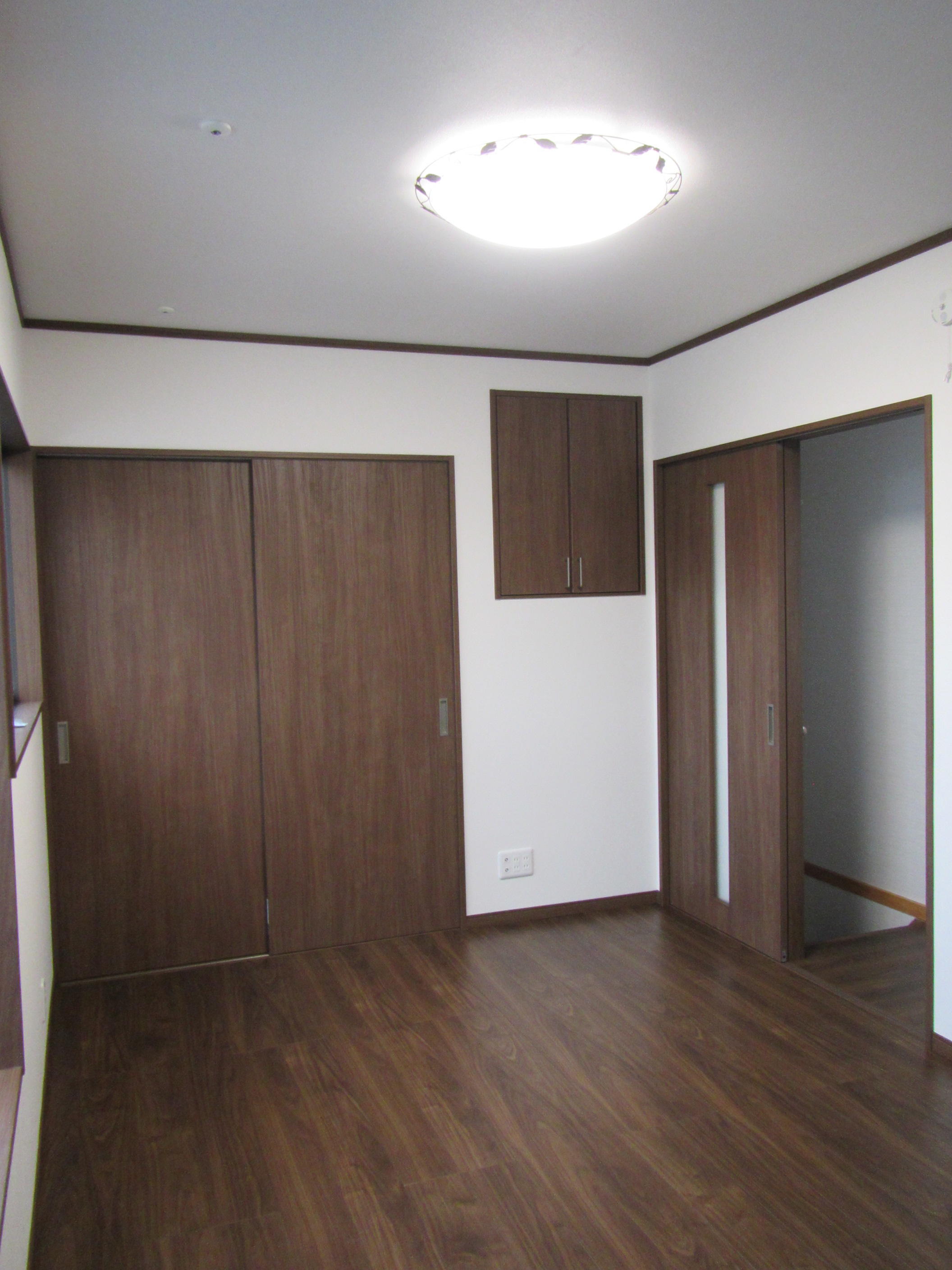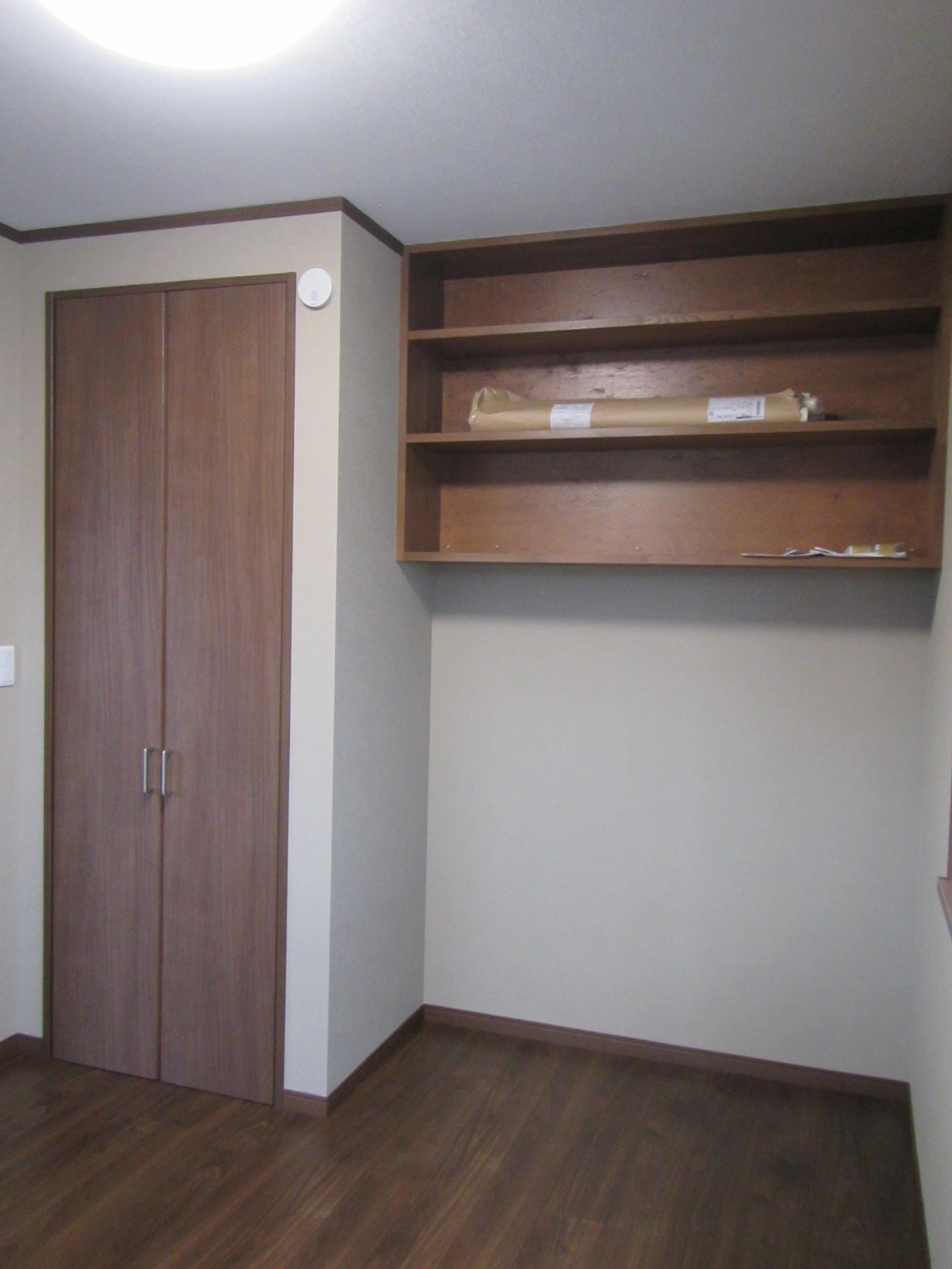 ダークブラウンの床と建具に合う、落ち着いた色のクロスです。