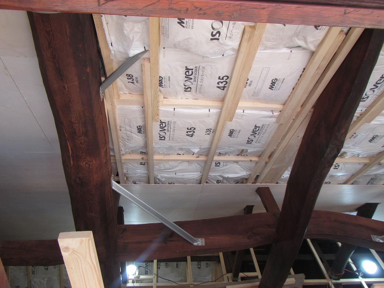 続いて壁や天井の下地施工しております!天井には155mmのグラスウールを施しています!