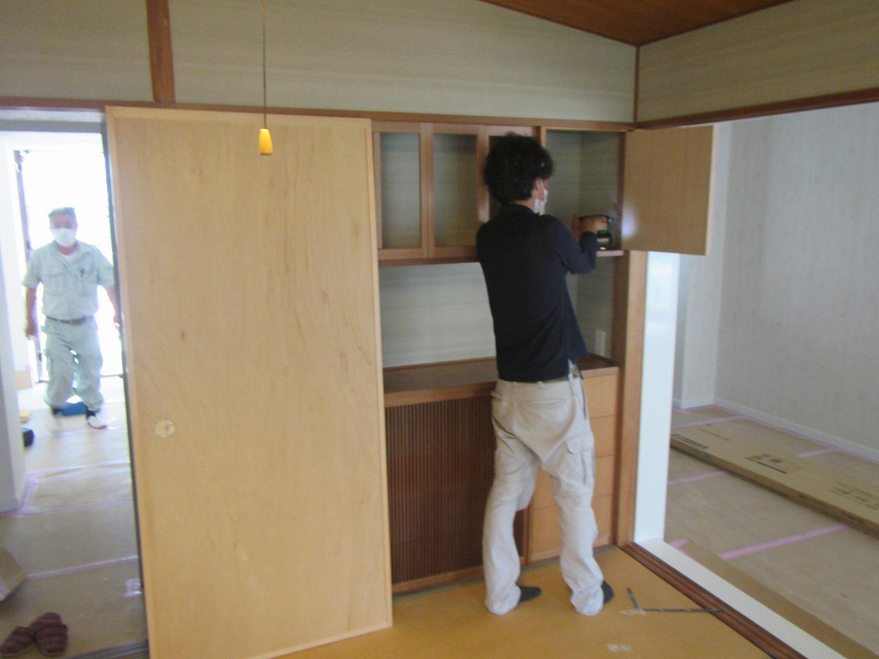 こちらは新しく作った木製建具を取り付けていただいている様子です(#^^#)