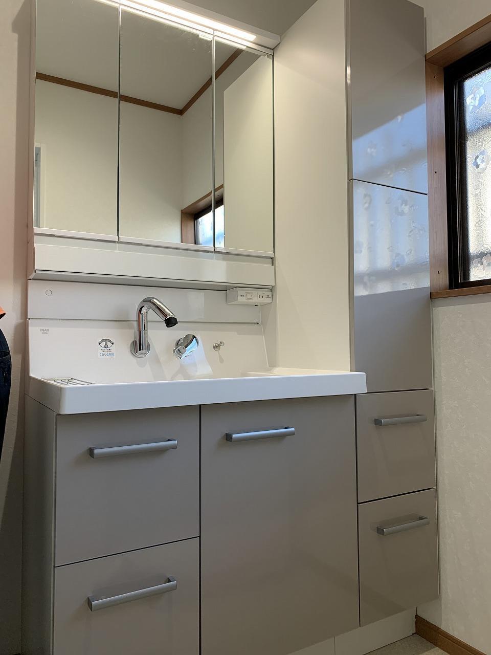 Y様邸の水回り工事が終わりました!まずこちらが洗面の様子です!