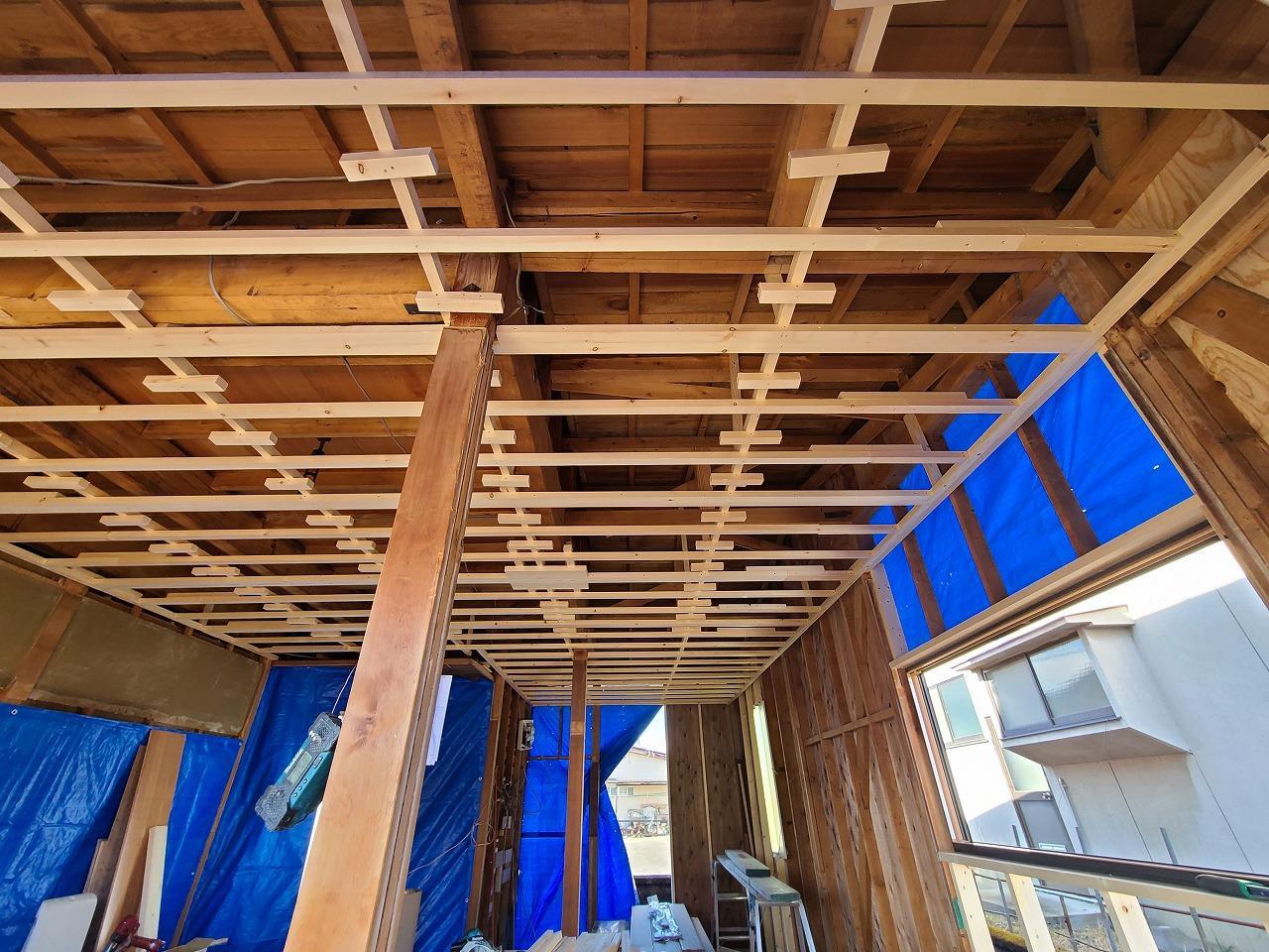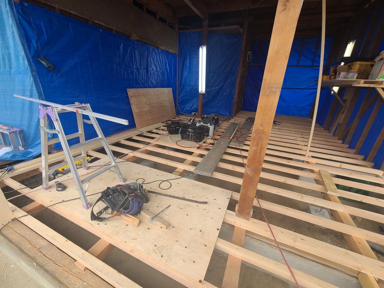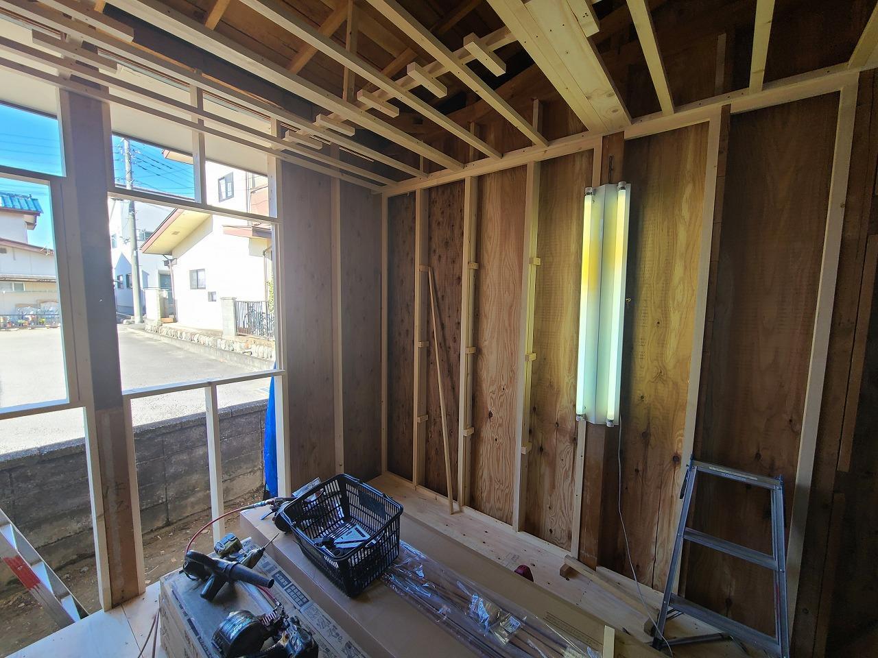 解体工事が終わり大工さんが床・壁・天井の下地を施工してくれています!