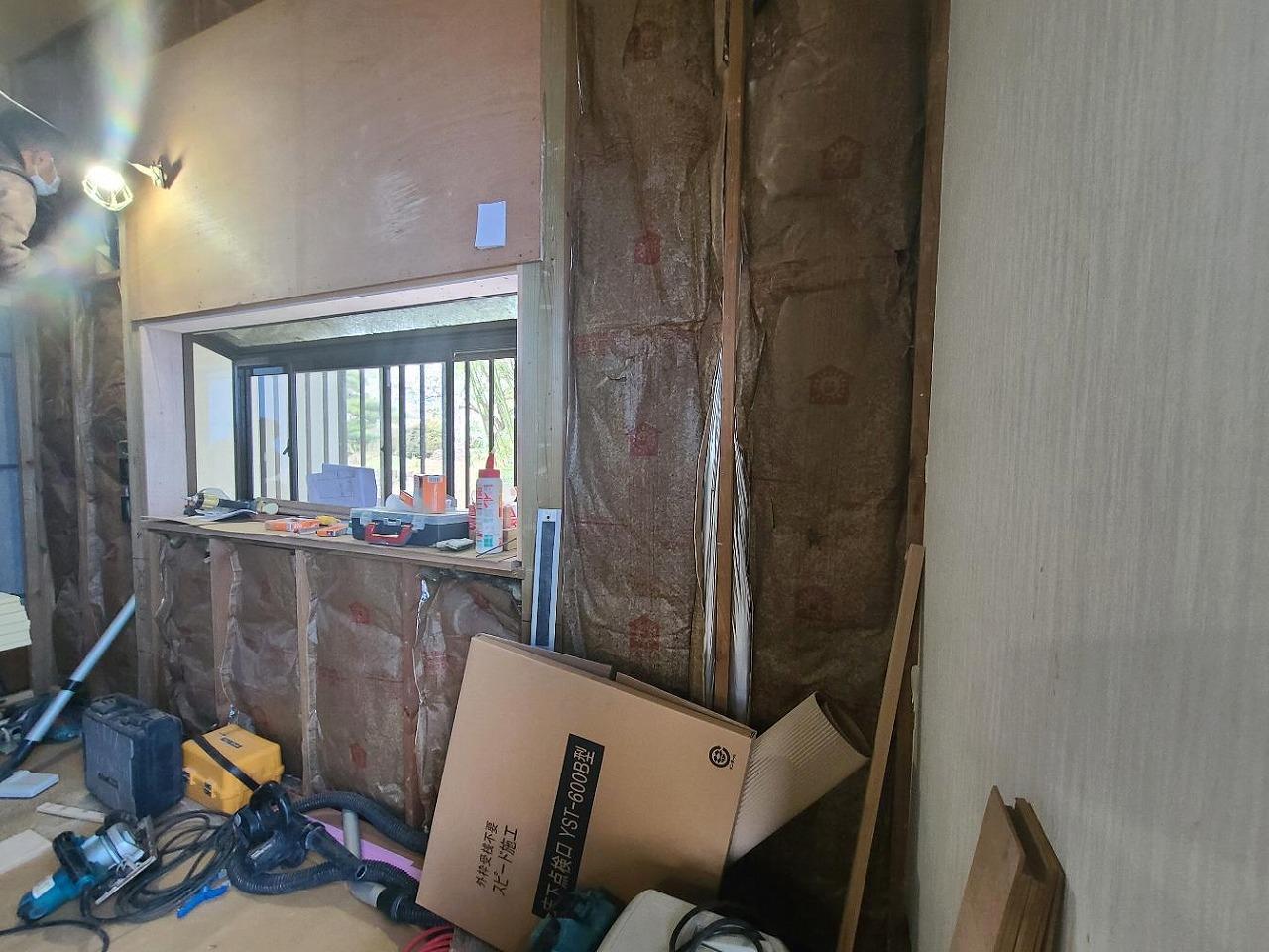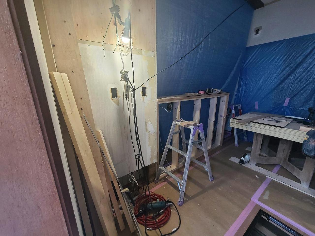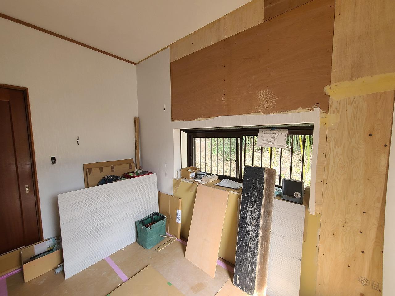 既存のキッチンを解体して大工さんが床のフローリングを貼り替てくれました。