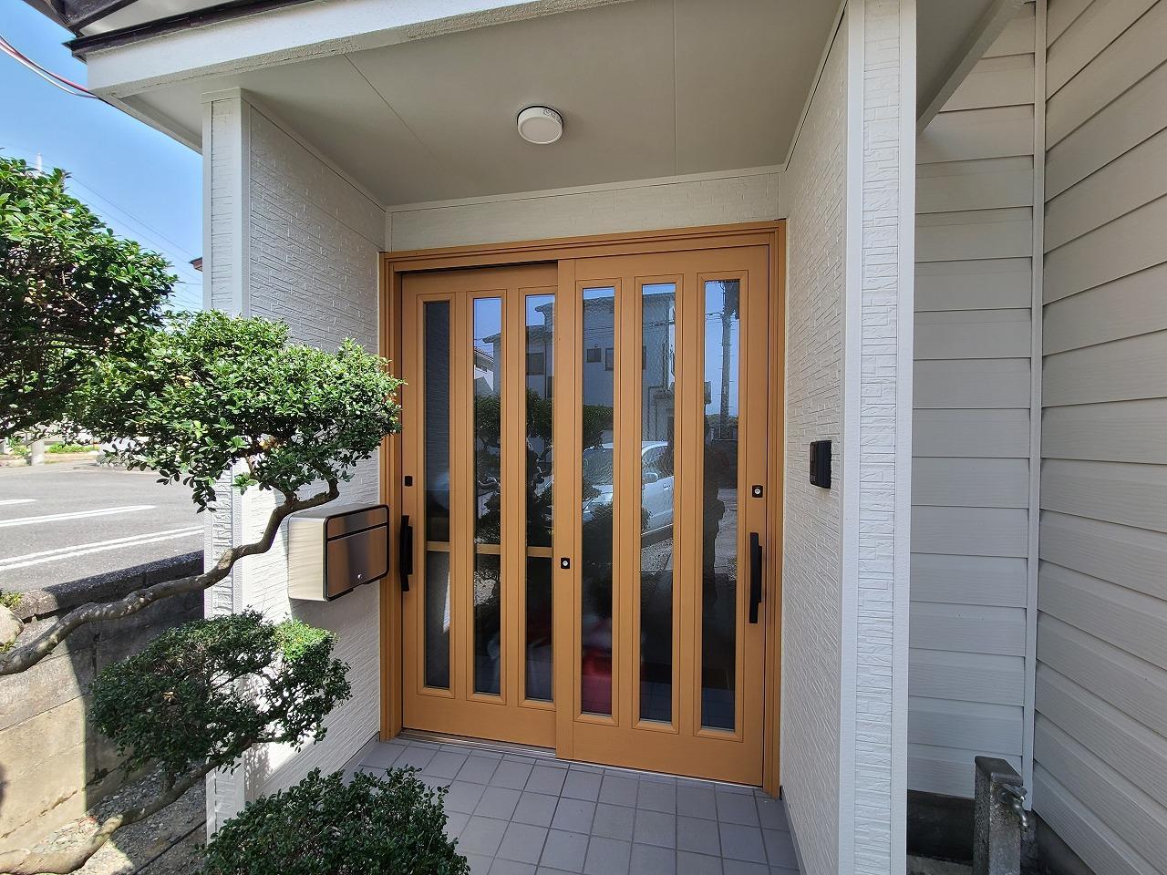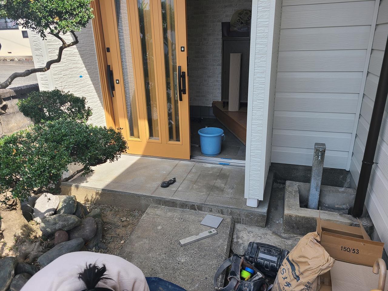 先日玄関サッシとポーチのタイル貼りの工事を施工しました!