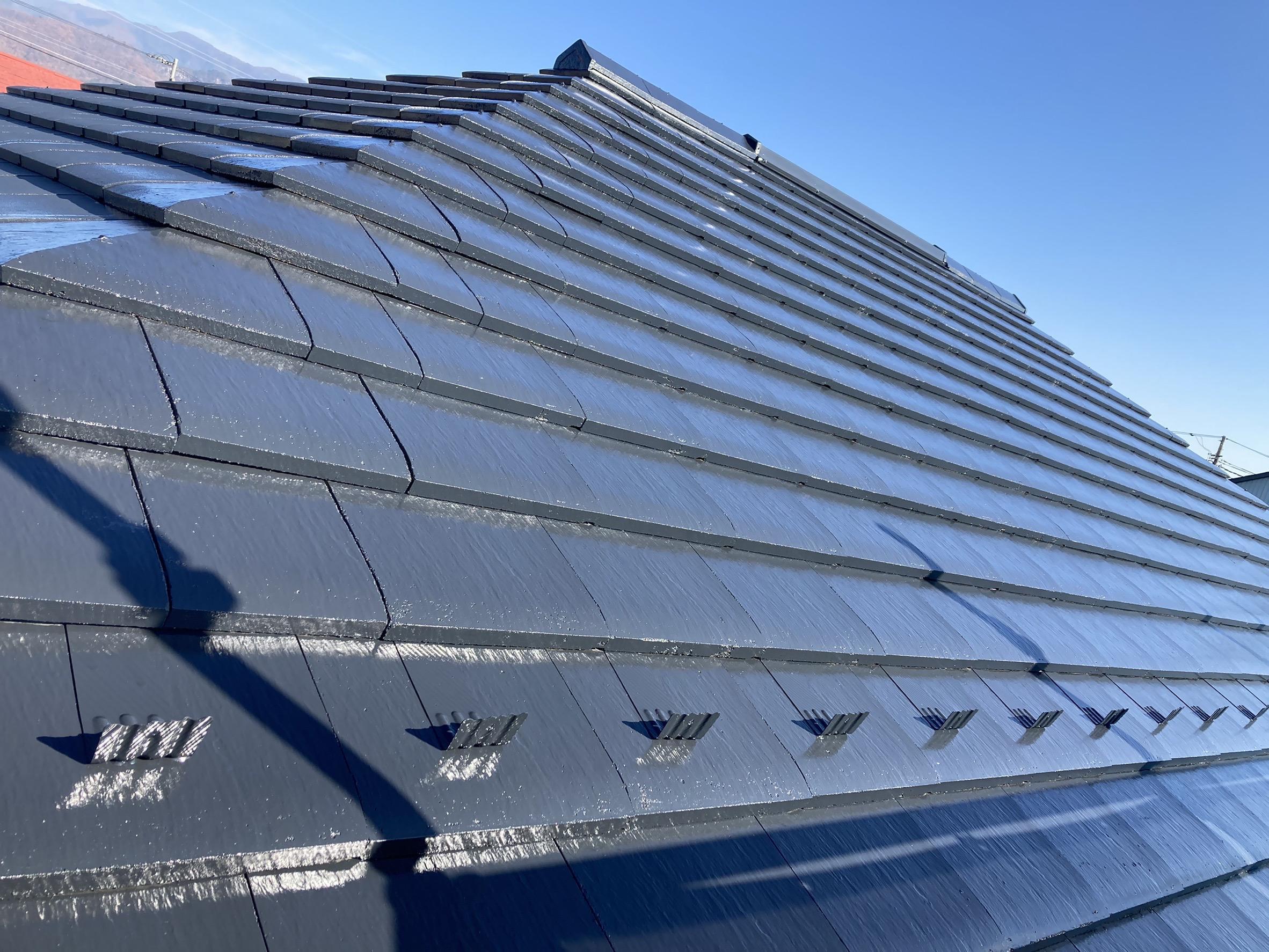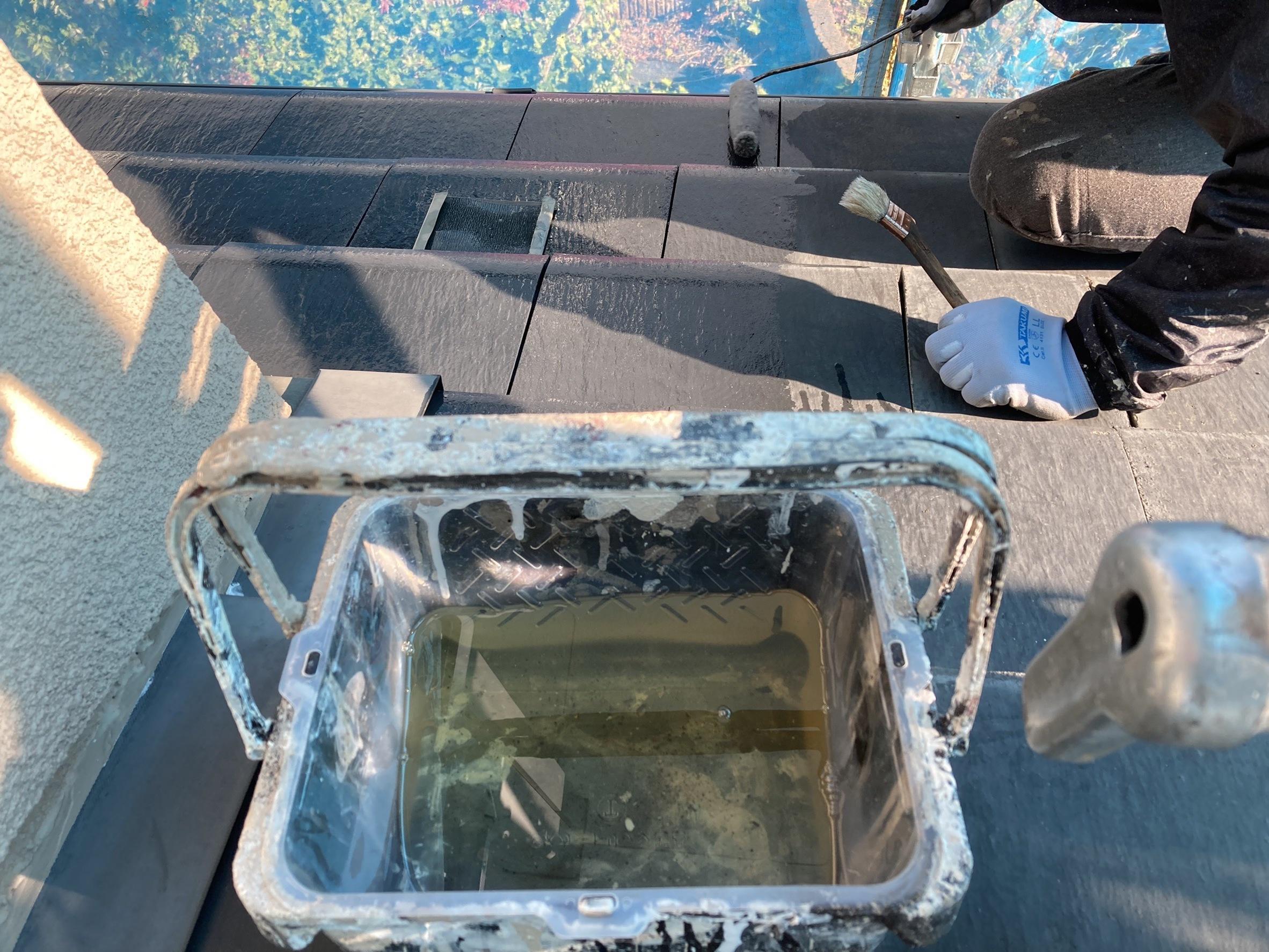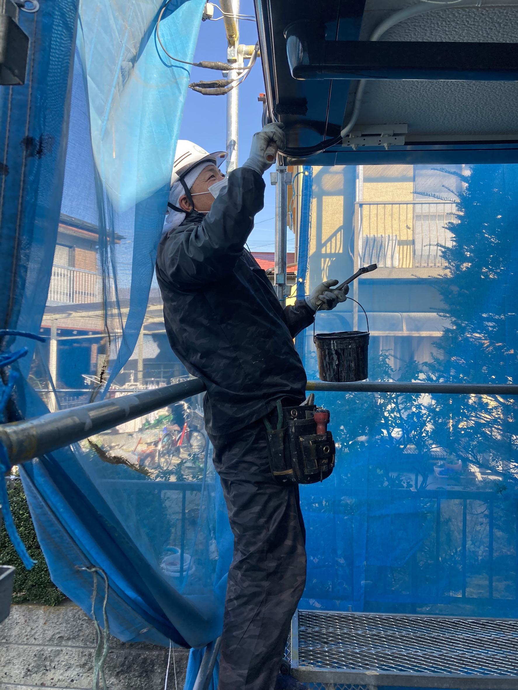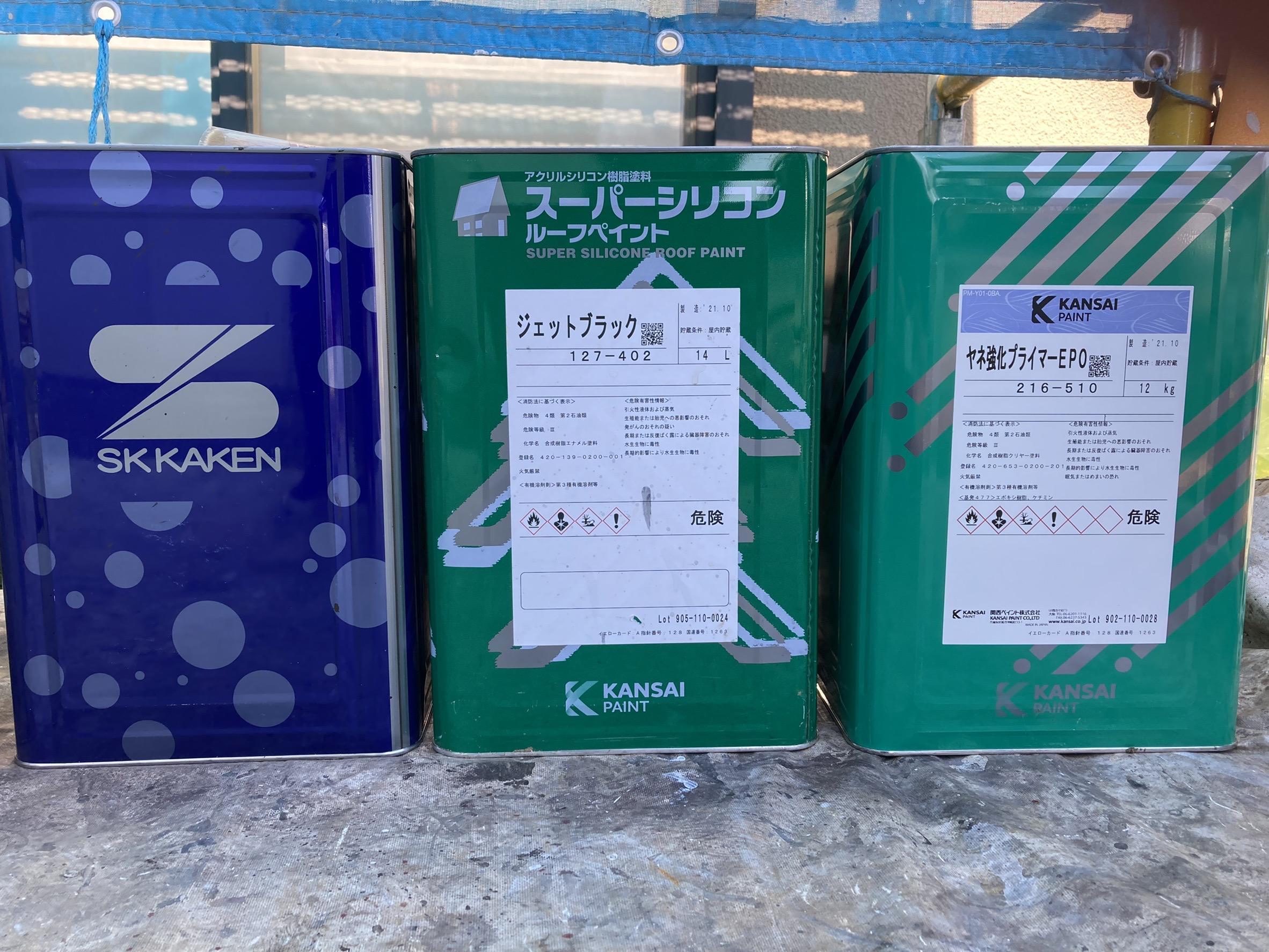 中塗り、上塗りは色付き(ジェットブラック)アクリルシリコン樹脂塗料の2度塗りです。