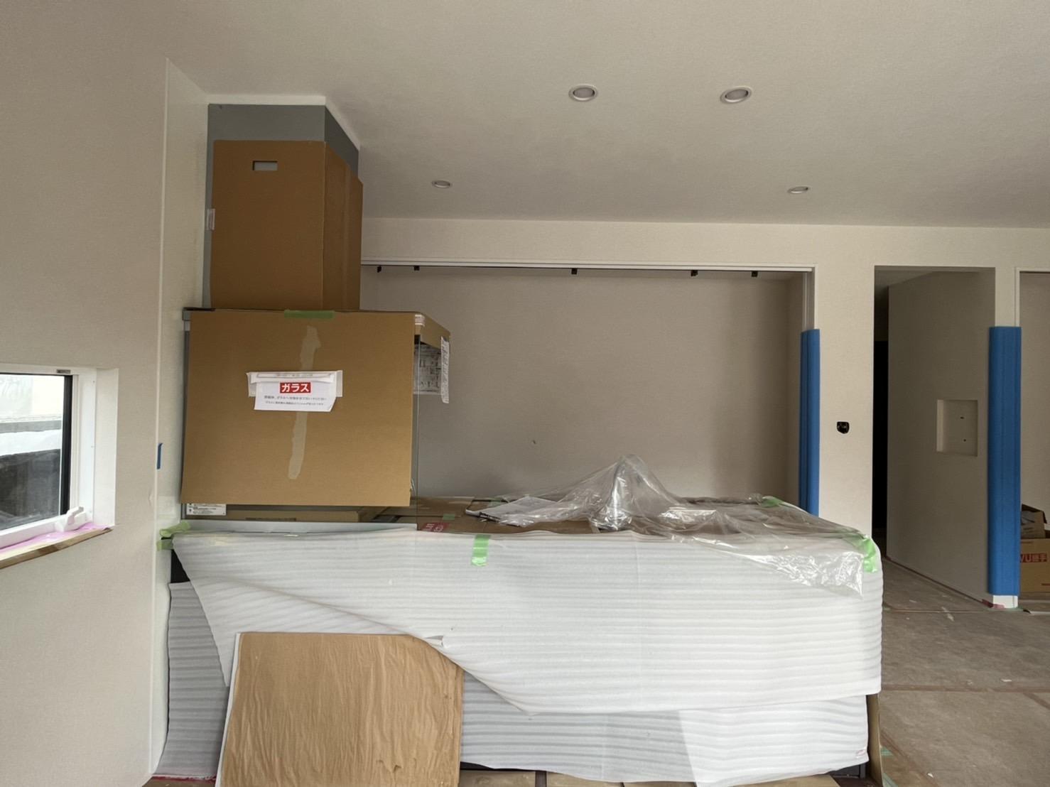 キッチンは養生しているのでまだ見れませんが、明るくなったのが分かりますね。