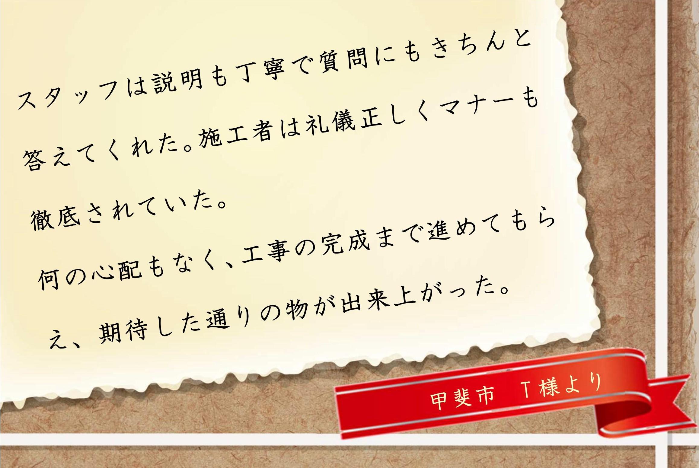 お客様よりありがたいお言葉をいただきました!