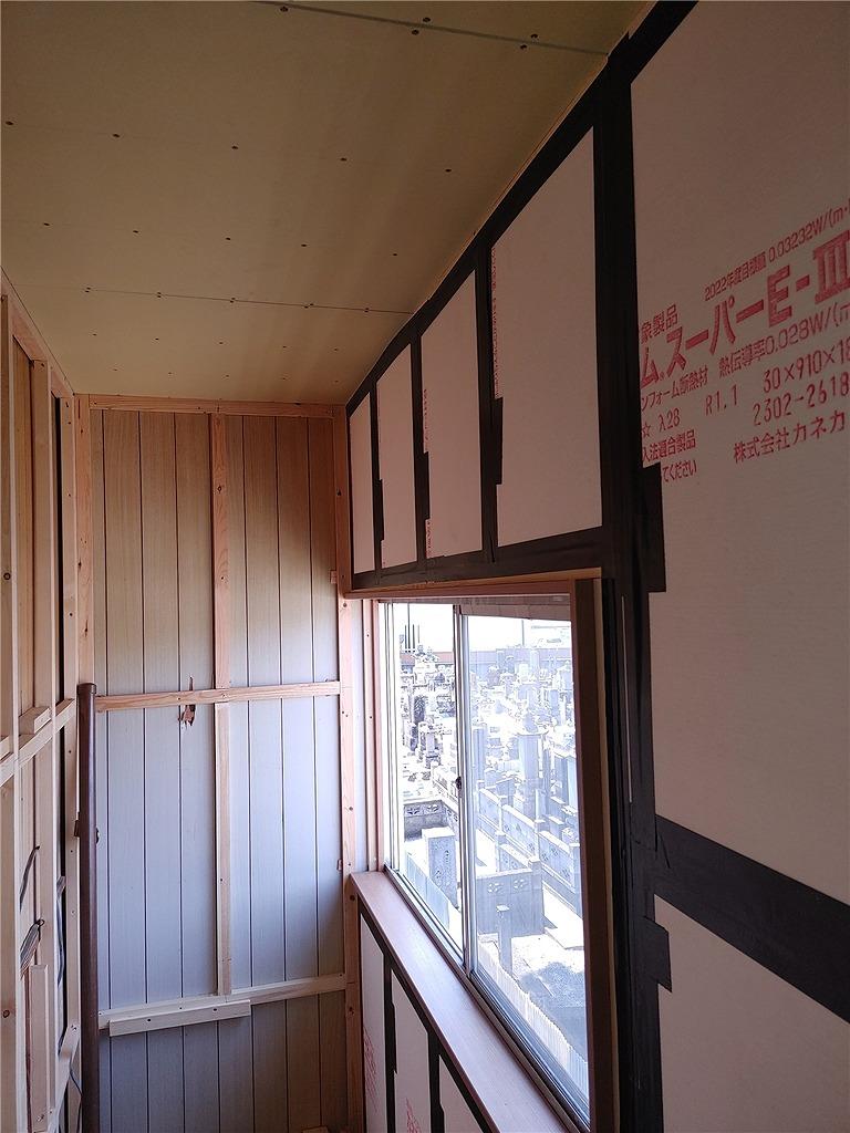 外壁面と天井部分にしっかり断熱材を施工しました!