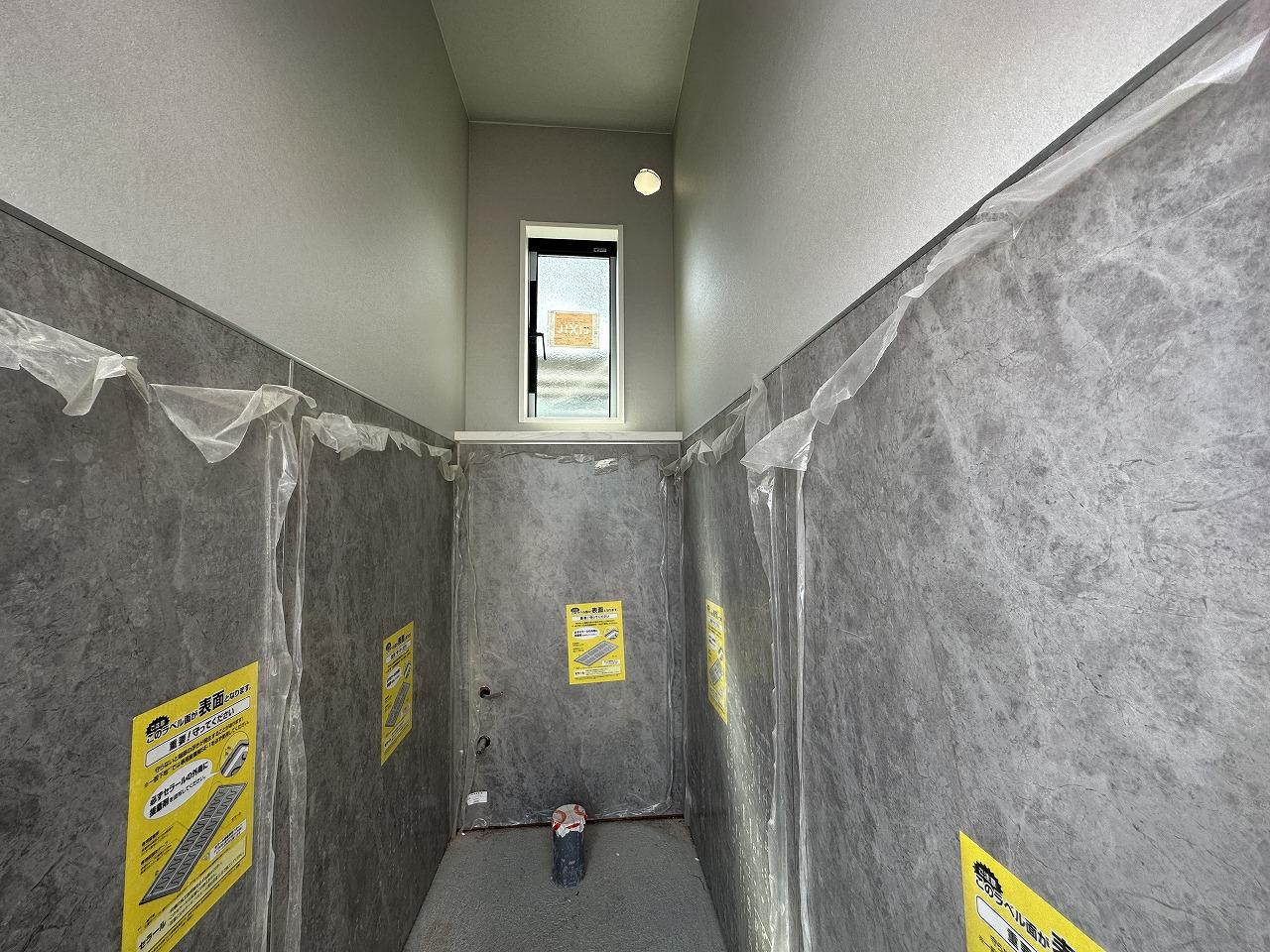 本日内装工事も完了して残すは床のタイル貼りと設備機器の取付です。