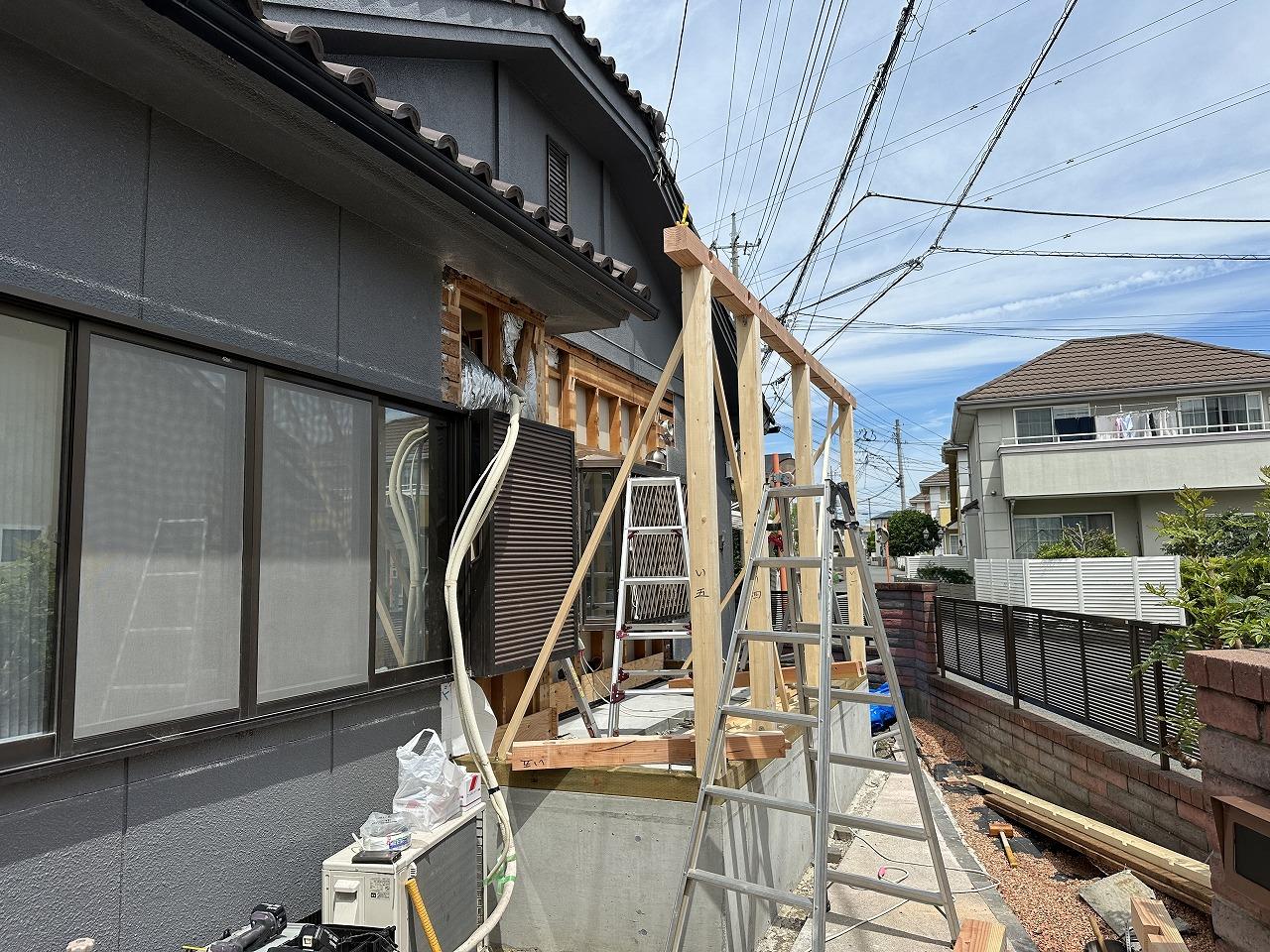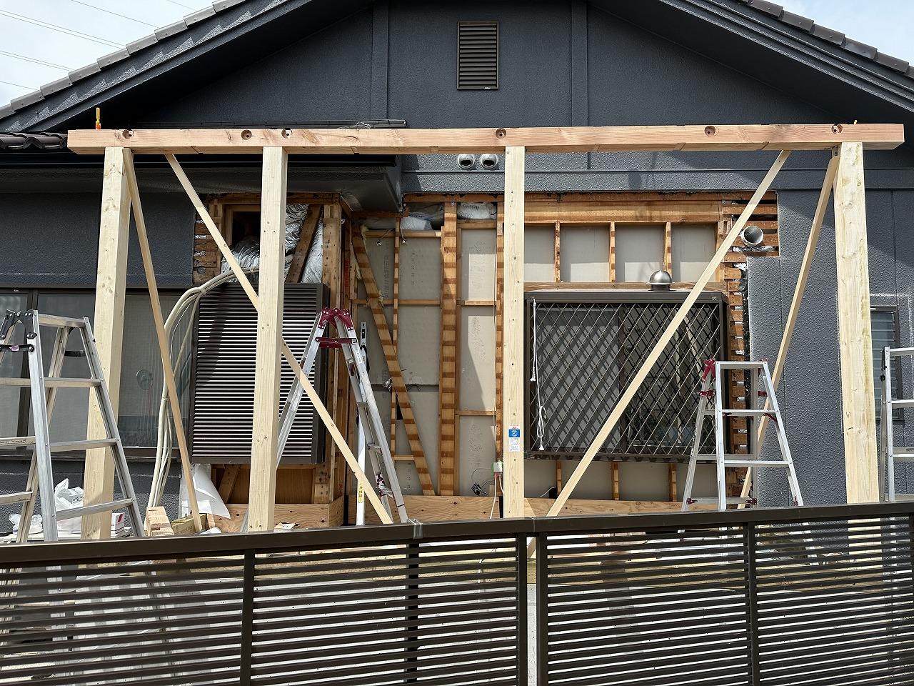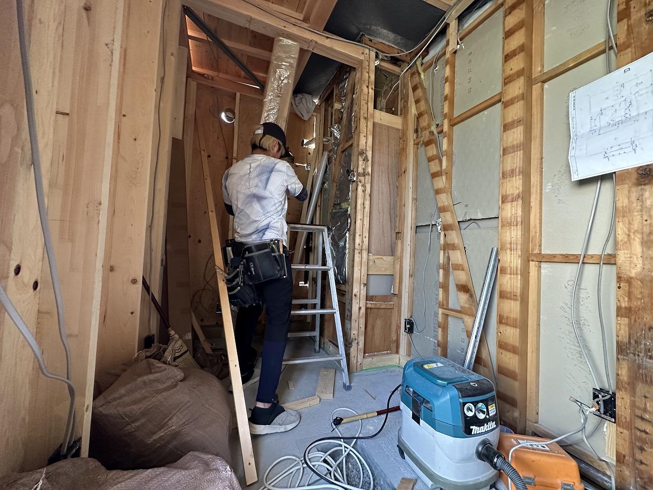 大工さんはこの後既存建物部分のサッシを断熱サッシに入替ていきます。