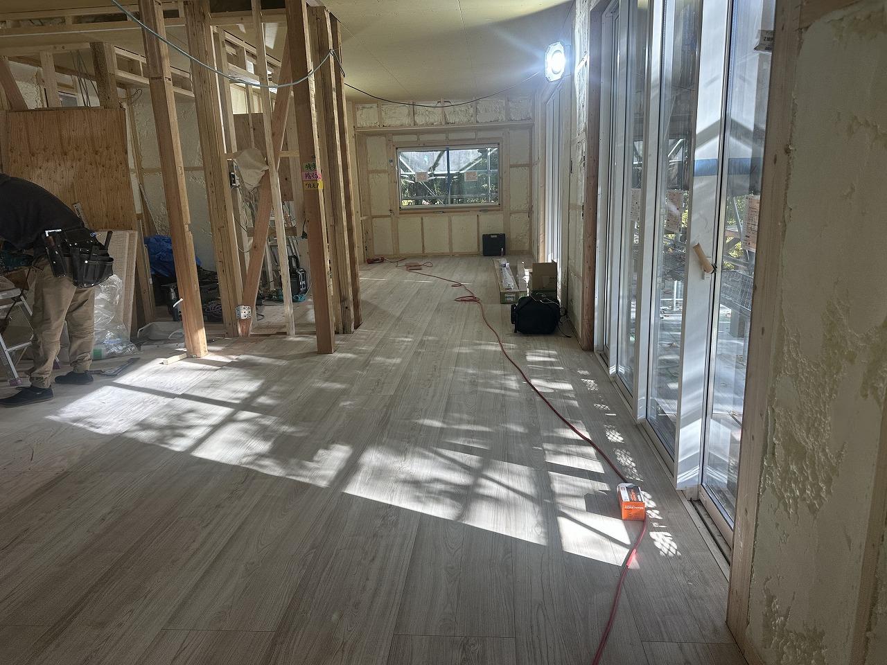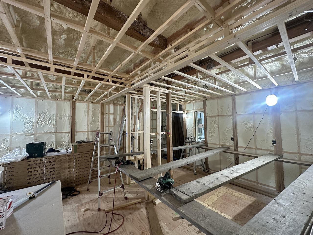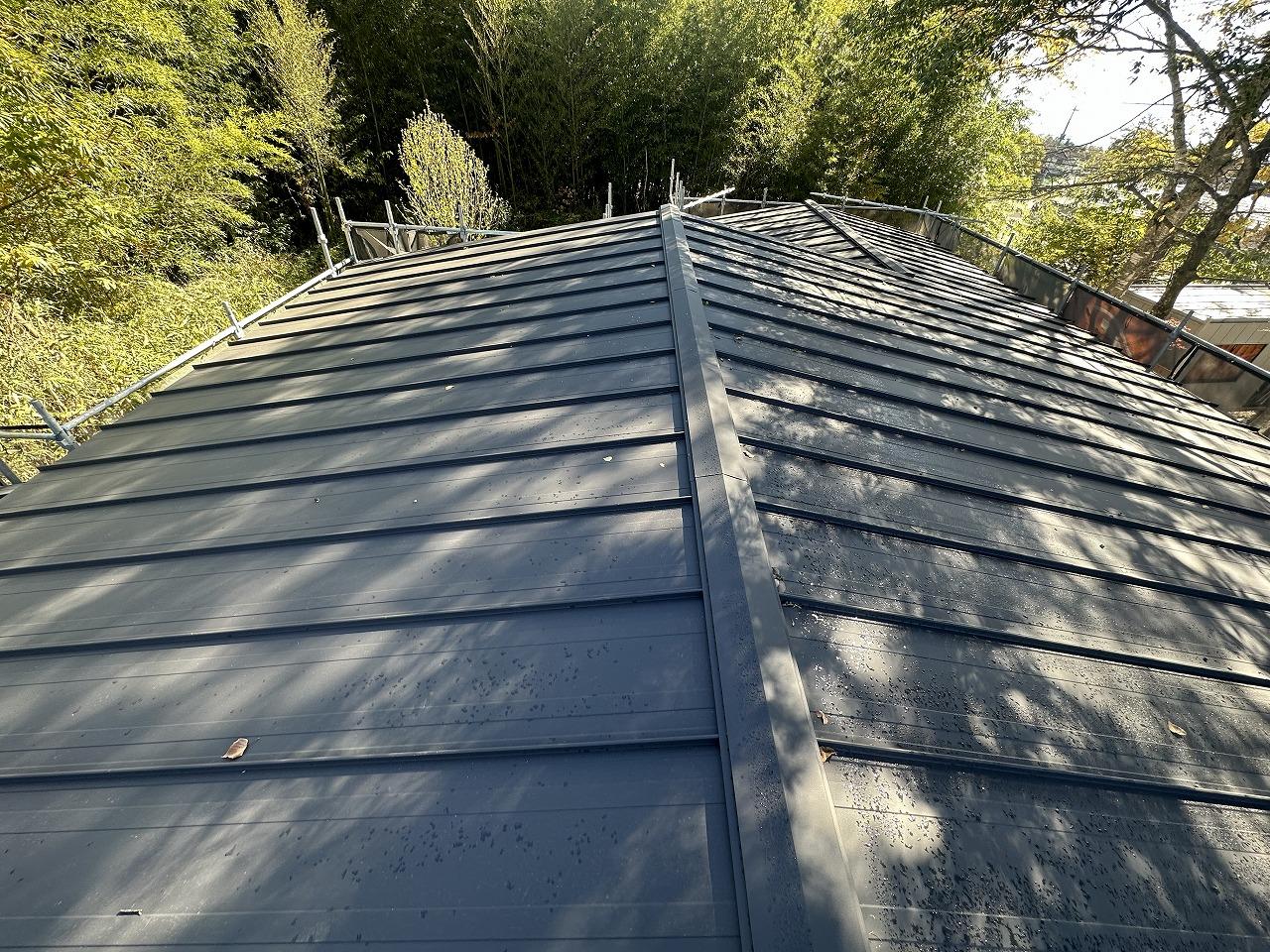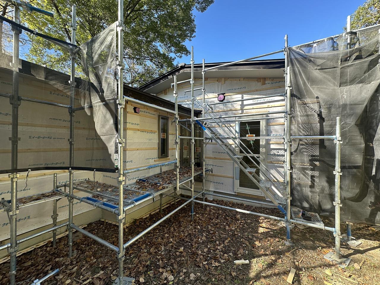 外部工事はガルバリウム鋼板の屋根が完了しています。
