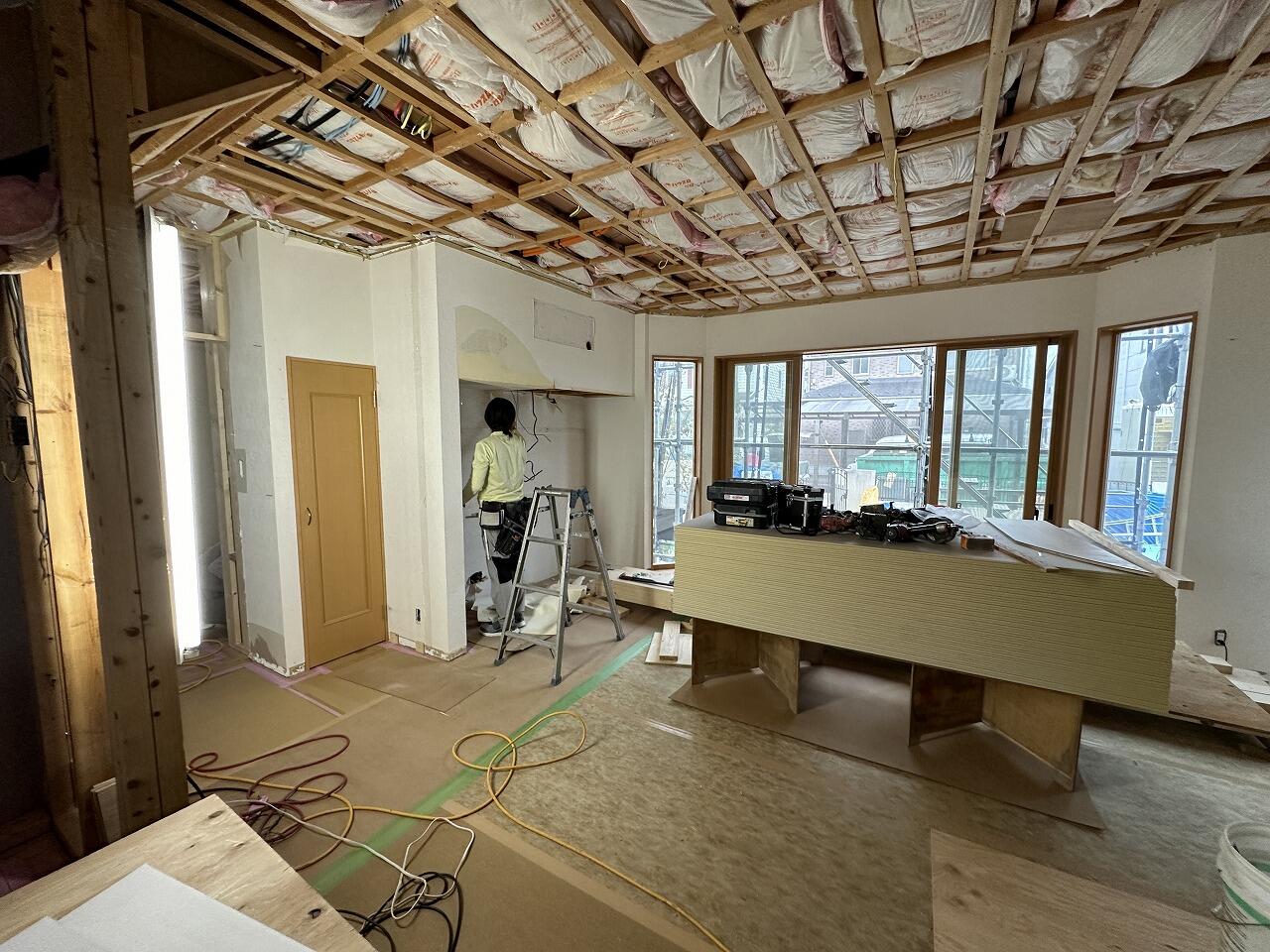 間取りが変更する箇所の外部サッシの取替も完了して、内部の造作工事の真っただ中です!