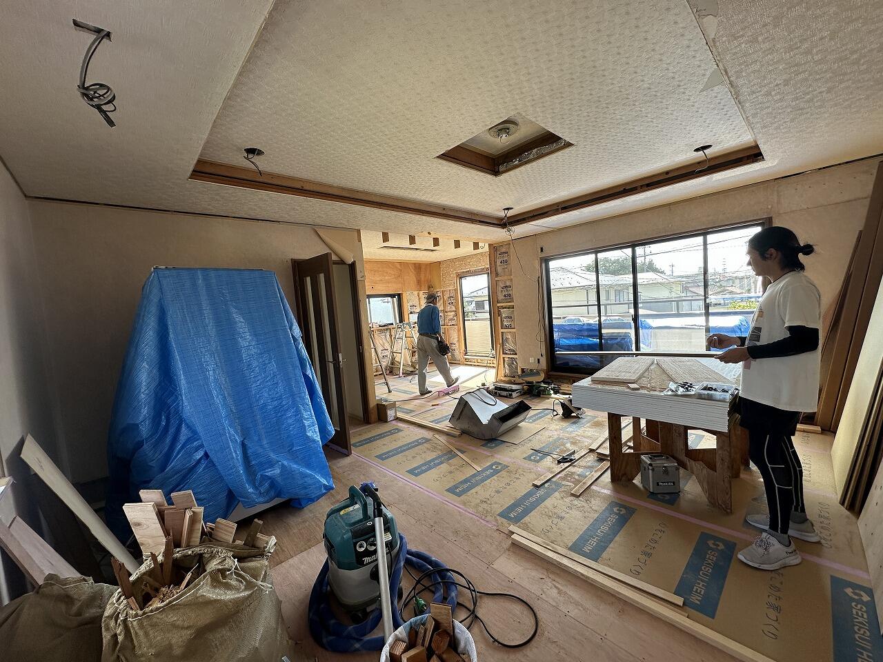 こちらのお宅は床のレベルが少々悪かったので、既存のフローリングをめくって下地をやり直しました。