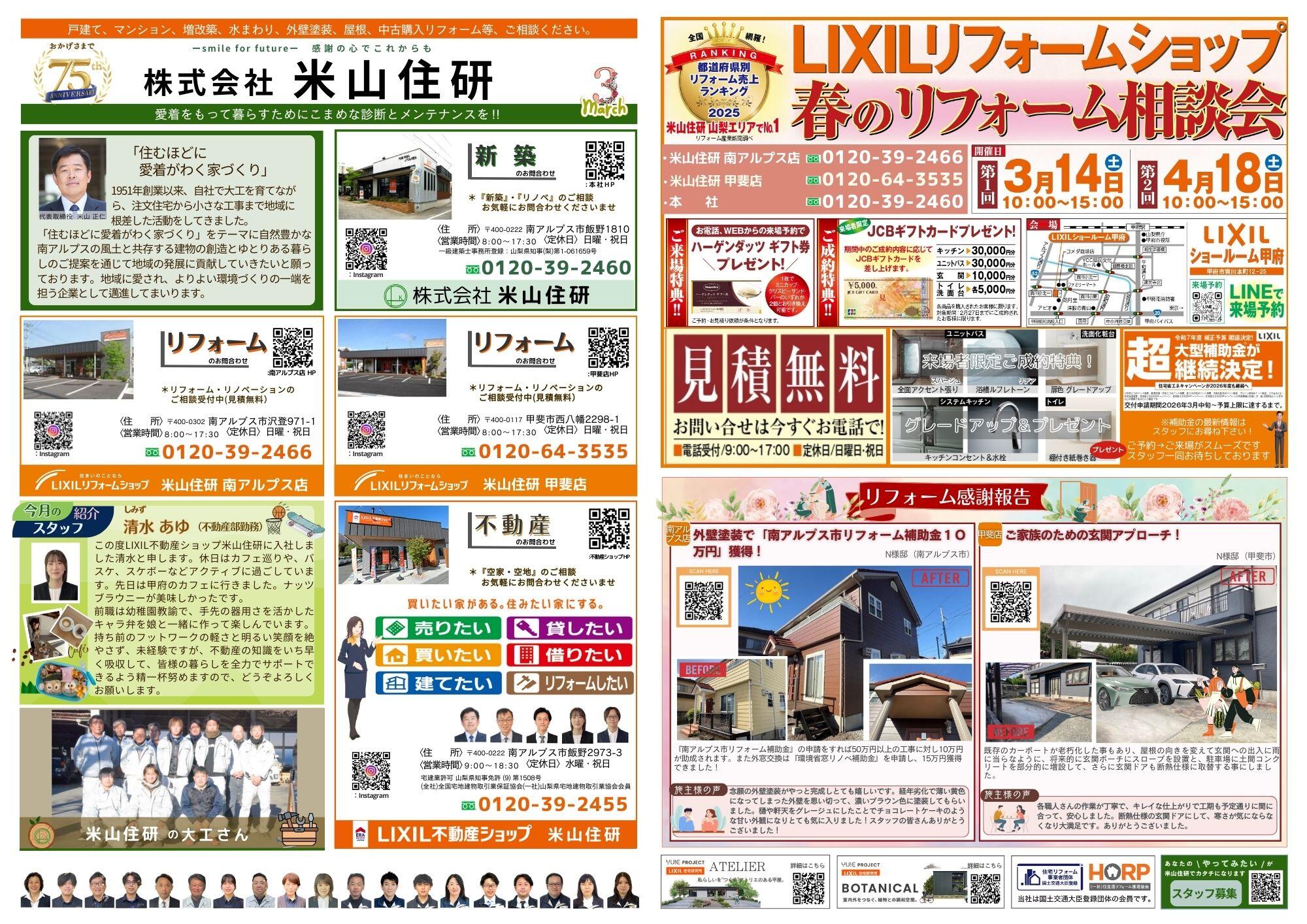 春のリフォーム相談会が3/14(土)4/18(土)に開催されます。