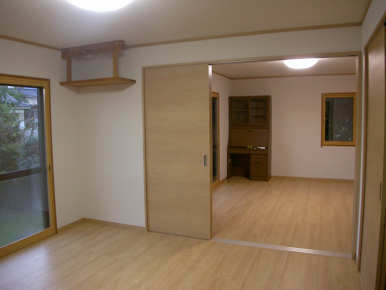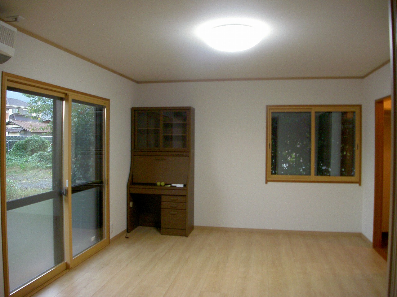 南アルプス市の和室、洋室、浴室、洗面、トイレリフォームが完成しました! 二間続きの和室を洋室にリノベーション。更にインプラスも取付けより快適な空間に。