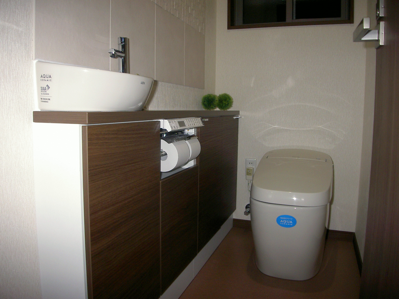 水廻りスペースが快適な空間にリニューアルしました。特にトイレはLIXILのサティスGの最高級グレードを採用。全ての快適機能が備わっています。キャパシアの手洗いの上部にはエコカラットをアクセントに、よりモダンなトイレ空間に生まれ変わりました。浴室もサイズを拡張し、洗面脱衣室もより機能的になりました。