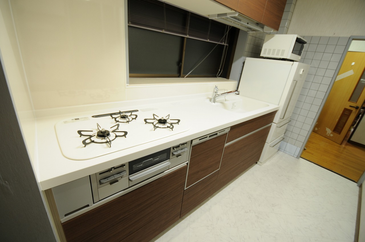 築31年の鉄骨造の建物。昨年末にトイレ&洗面のリノベーションを行い、今回はキッチンの交換工事。デザインもトイレと同様に落ち着いた色をセレクト。カウンターの高さも使いやすく90cmにし、食洗器も設置しました。とてもオシャレな施主様なので、実際にご使用されると更に素敵な空間になるかと思います。お忙しい毎日かと存じますが、ご自宅で過ごす時間も大事にされているご様子がうかがえます。施主様からポジティブなエネルギーをこちらまで頂いていまして、この「ご縁」にとても感謝しております。