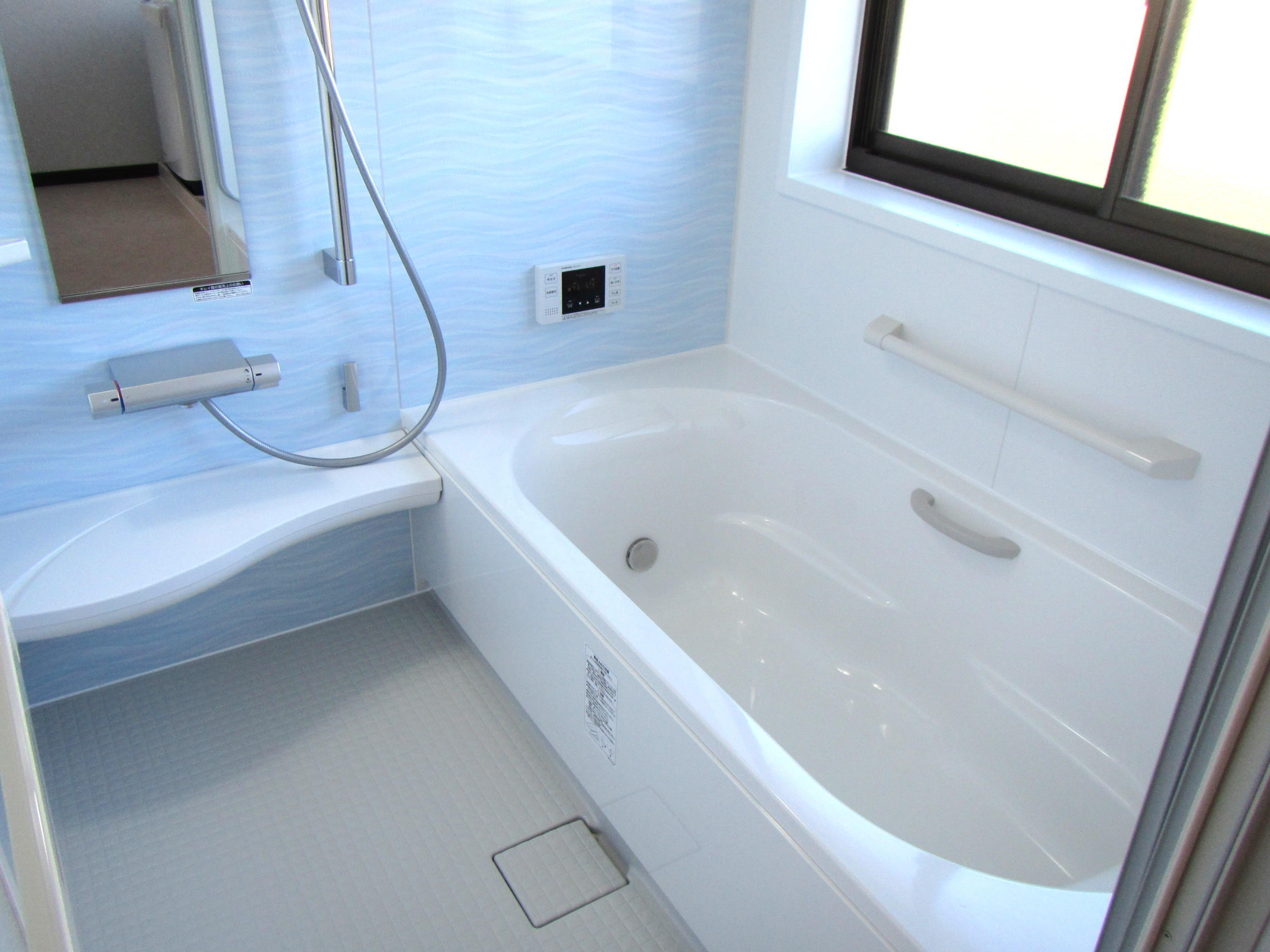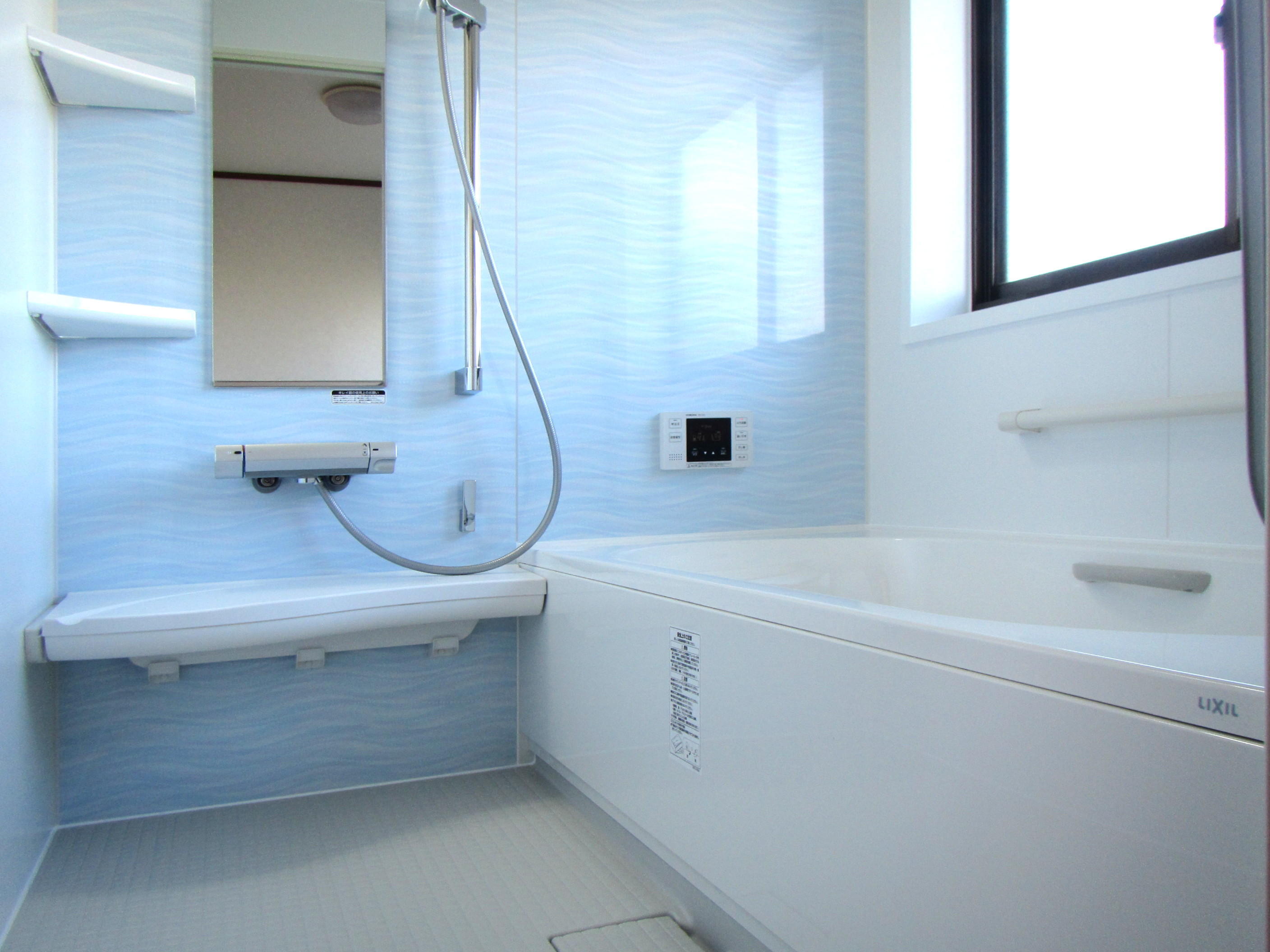 今回は既存のお風呂もユニットバスだったので工事日数も短くて済み、新しく断熱材を入れて寒くなる前に完成することが出来ました。 最新のユニットバスはデザイン性も良く、こちらのお客様は爽やかなブルーのアクセントパネルを選択されました。浴室暖房も完備されていますので快適に冬場の入浴が出来ると思います。