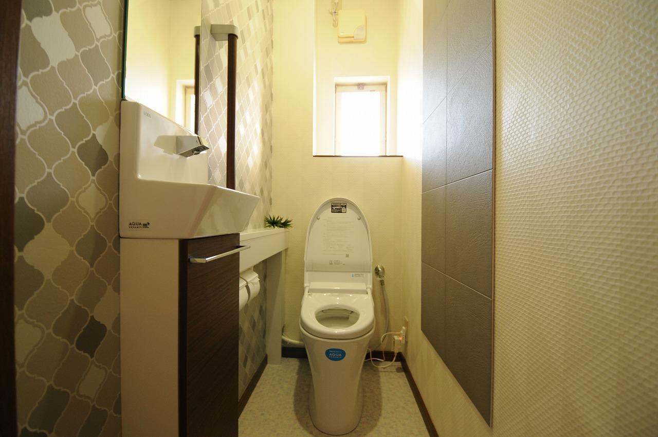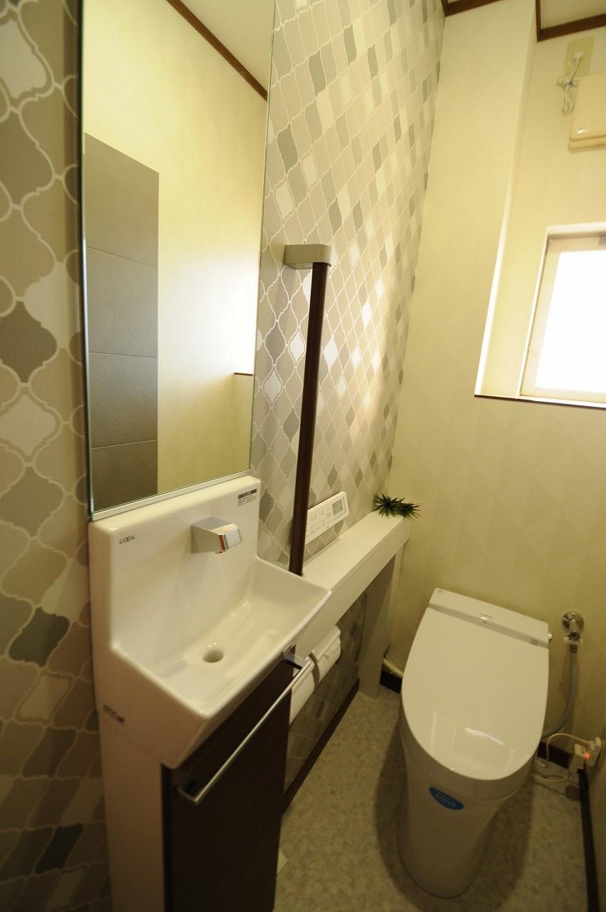 明るく快適な空間になって良かったです。手洗い位置には特にこだわり、思ってた以上に使いやすくなりました。2階の便座は他メーカーを使用していて、待機温度設定まで上がる微妙な差もあり、メーカーさんの特徴の違いを感じました。雰囲気も変わりデザインにも満足しています。エコカラットの消臭効果も、今まで開けっぱなしだった窓を閉めて試してみたいと思っています。