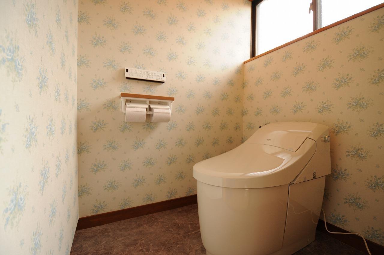 トイレを空間ごとリニューアルしました。以前のトイレと比較し、タンクレスタイプで人気の「LIXILプレアスLS」をお選び頂いて、空間も広々とご使用頂けます。節水効果は勿論、フルオート便座・自動洗浄などなど機能も充実しております。奥様のお好みの上品な花柄の壁紙が優しい印象のトイレ空間になりました。