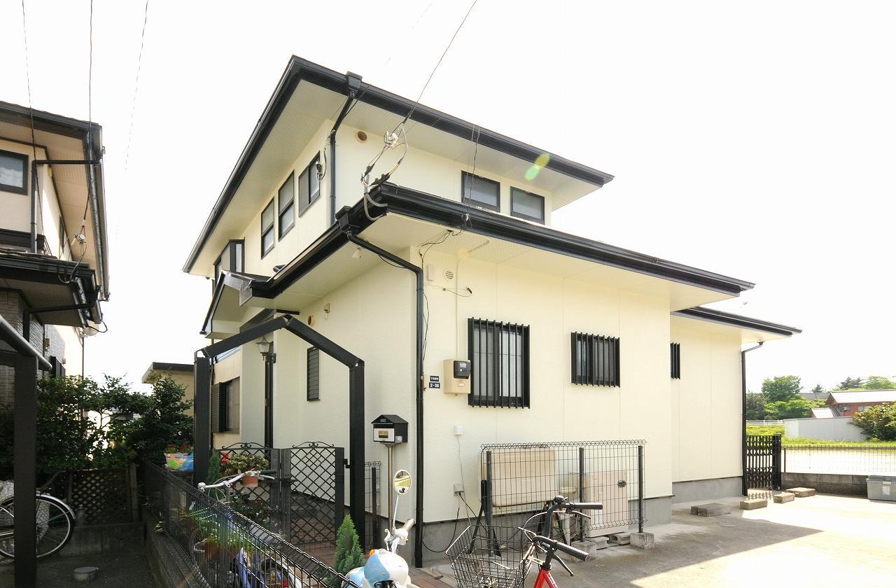 築20年で初のリフォーム。まずは家全体のイメージが変わる外壁・屋根の塗装を行いました。アイボリー系の外壁の色から、やさしいグリーンの入った爽やかな色にリニューアル。屋根・破風・ボーダーラインの引き締まったコントラストが更にイメージアップし、その効果は毎日の暮らしまでもリフレッシュした気持ちにさせてくれます。
