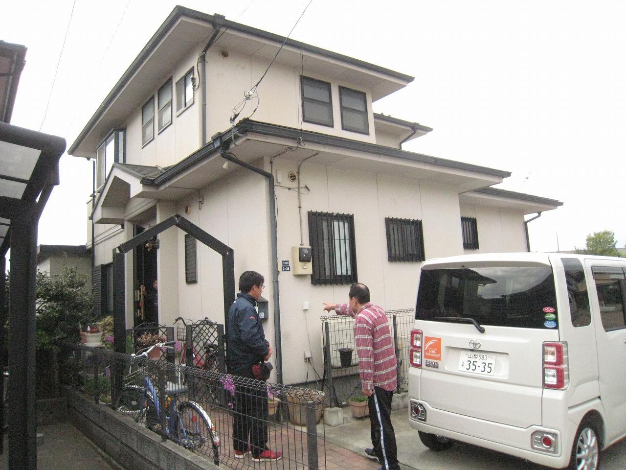 甲府市で塗装リフォームです 外壁の爽やか色と屋根・破風の色のコントラストが素敵な印象
