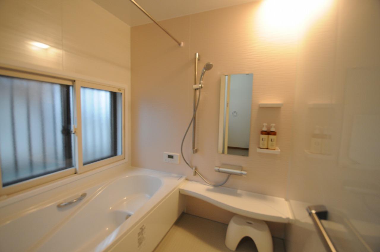 施主様のお母様が介護先で大好きなお風呂にゆっくり入れないことを伺い、リフォームのご相談をお受けしました。既存浴室の床には深い溝があり、歩くのに困難なことと、お手入れにも難がありました。 冬は寒さが厳しく、脱衣室にヒーターは欠かせませんでしたが、今回のリフォームで「浴室換気乾燥暖房機」を設置し、断熱効果を上げるため「インプラス」を設置しました。機能面はもちろん、デザイン面でも素敵な空間になりました。センスの光る奥様もご満足いただけました。