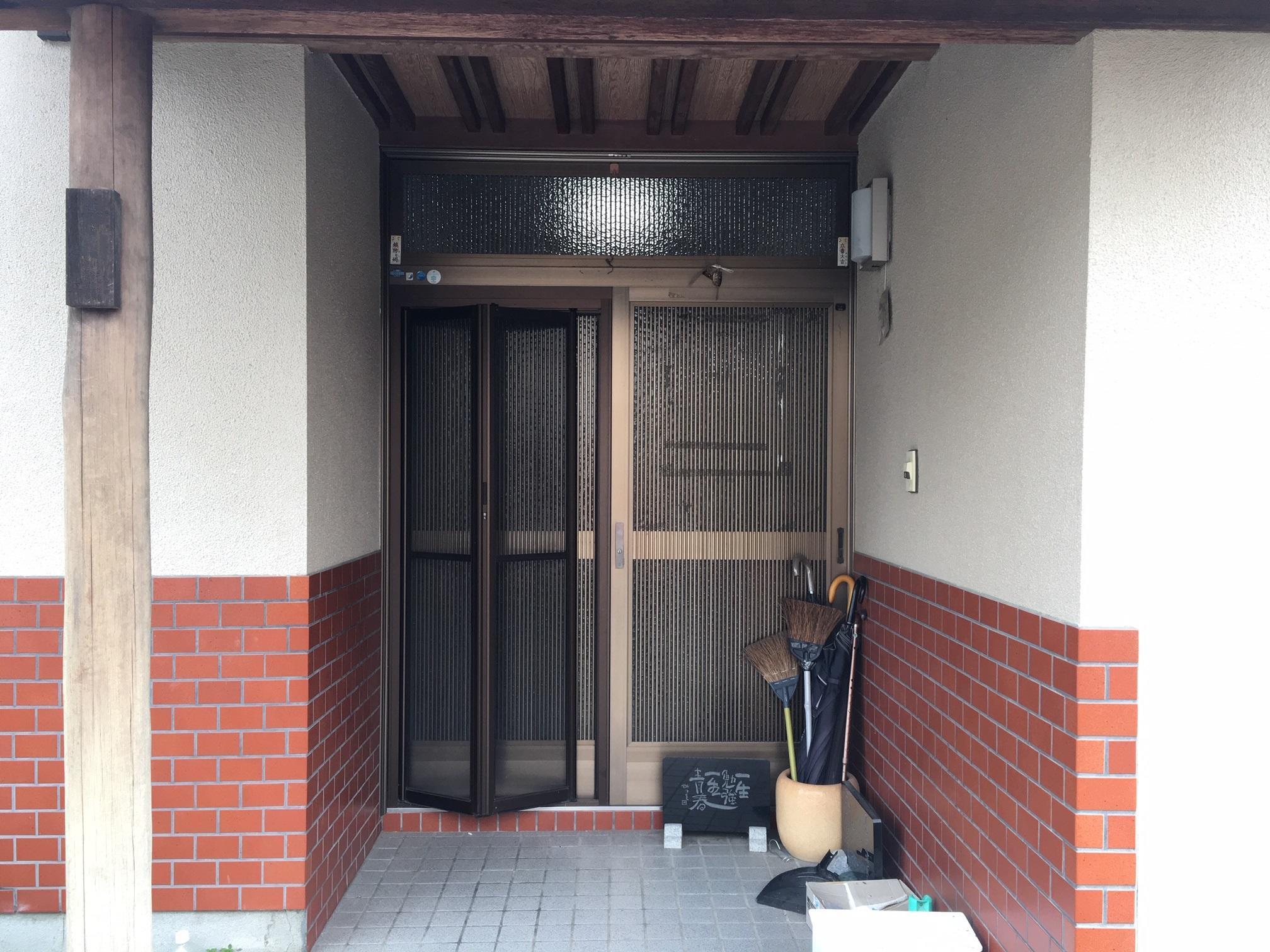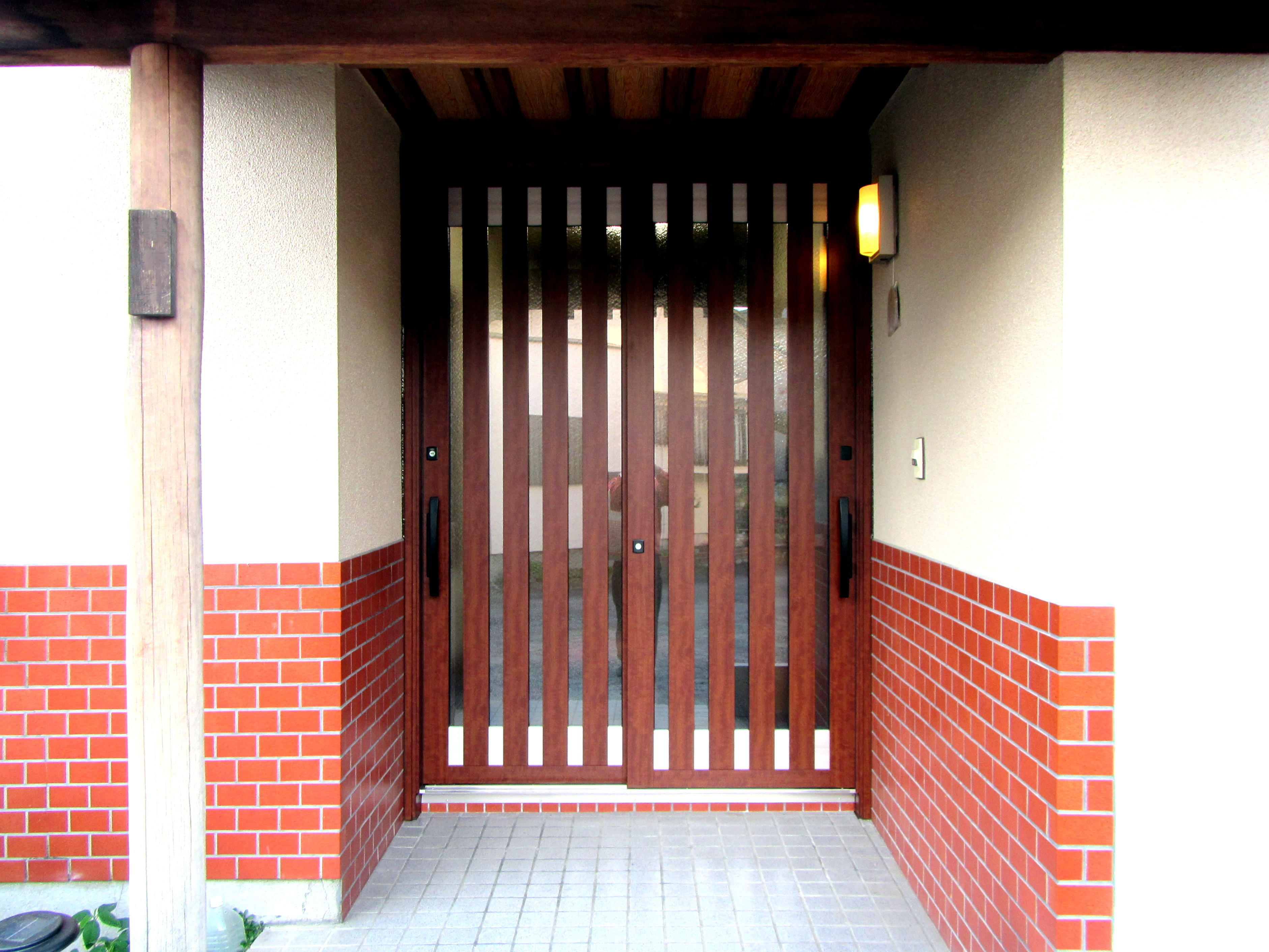 明るい木目調(ポートマホガニー)の引違い戸で玄関の雰囲気がとても明るくなりました!