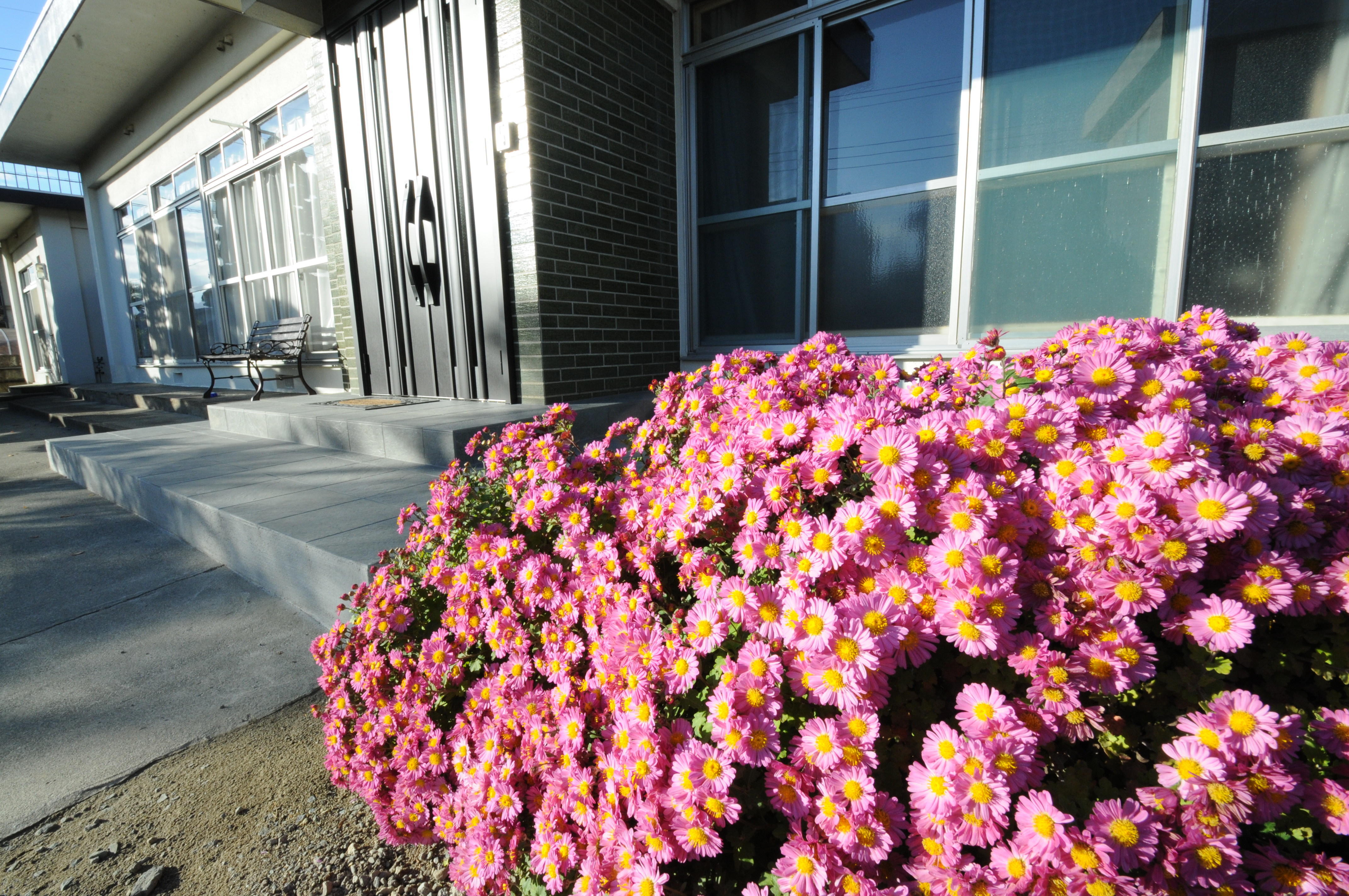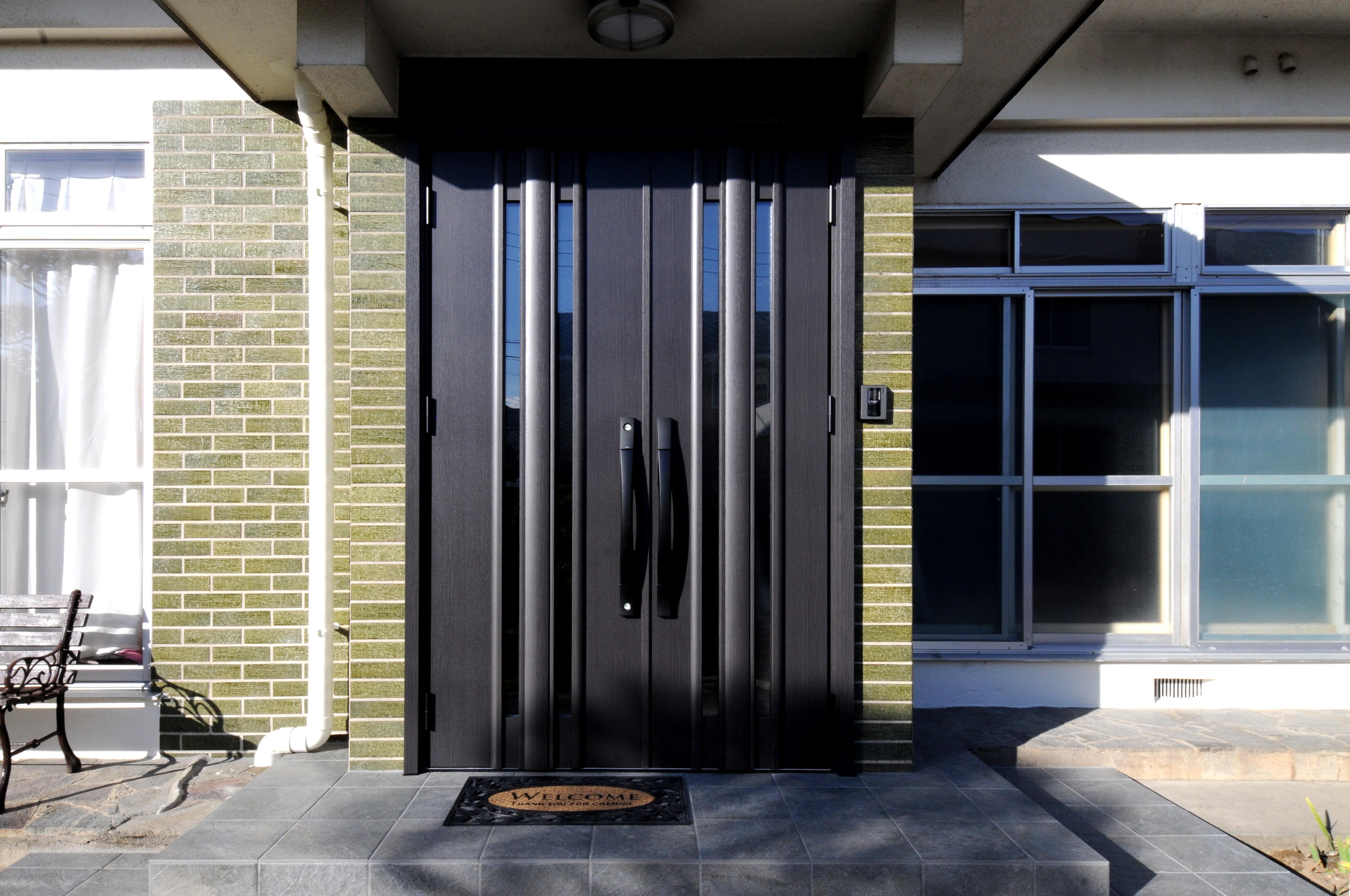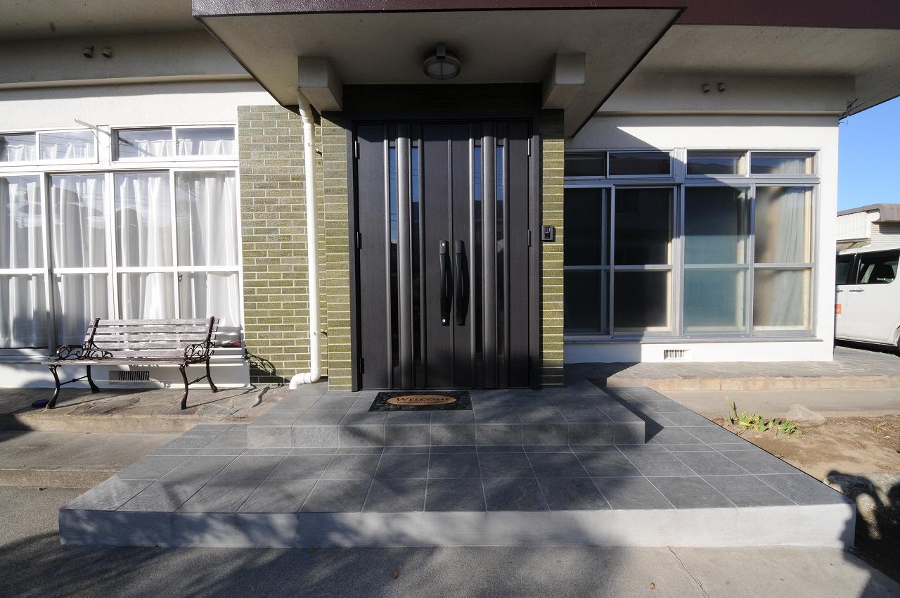 玄関ドアは両開きで重厚感があり、タイルも張替え豪華にリニューアルしました。