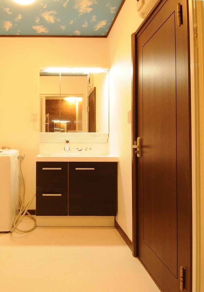 水廻り空間をリニューアル!お客様の憧れとこだわりがみられる、ほんわかする青空模様の内装材を採用しました!開放的で明るい空間に生まれかわりました!
