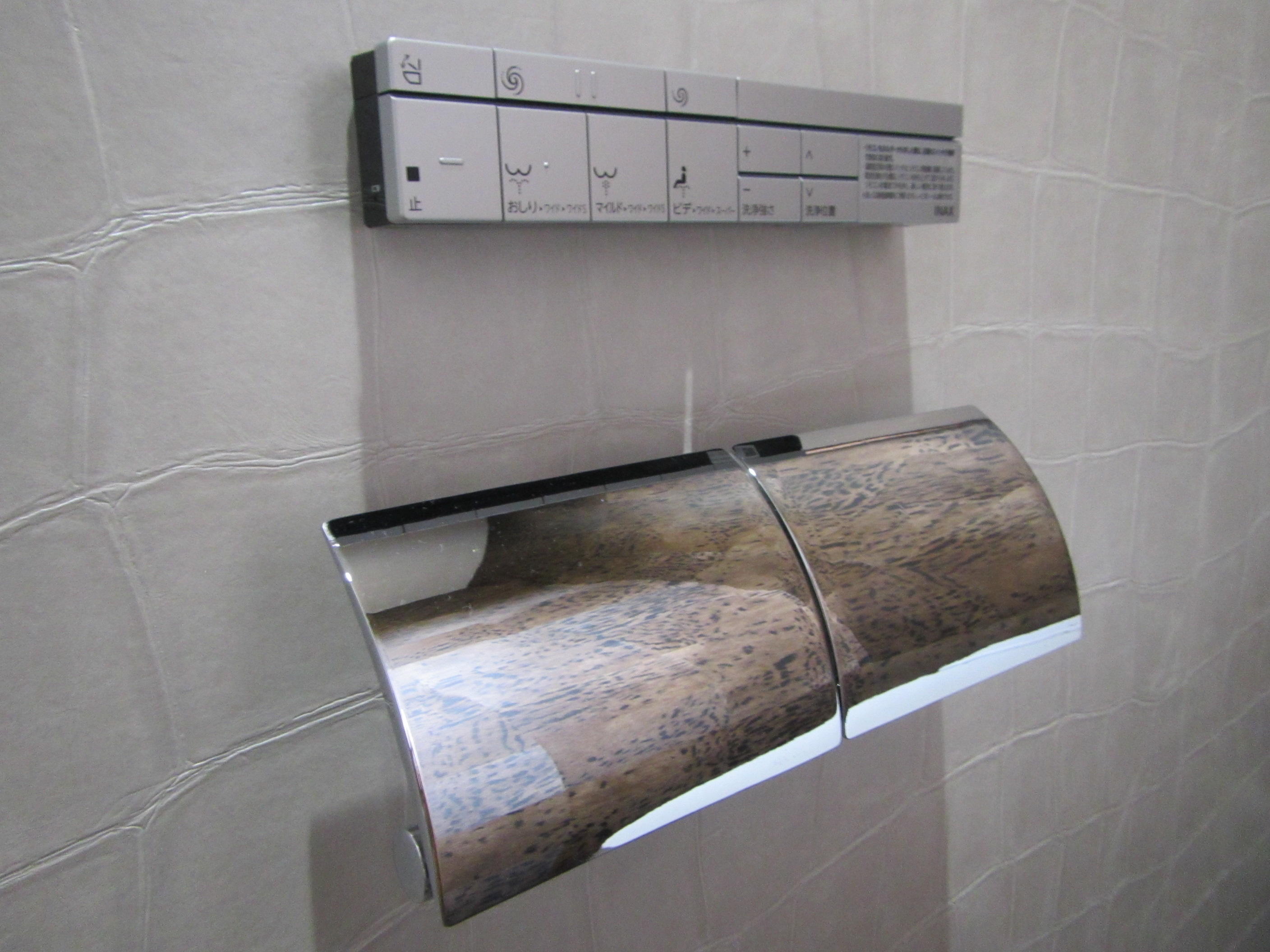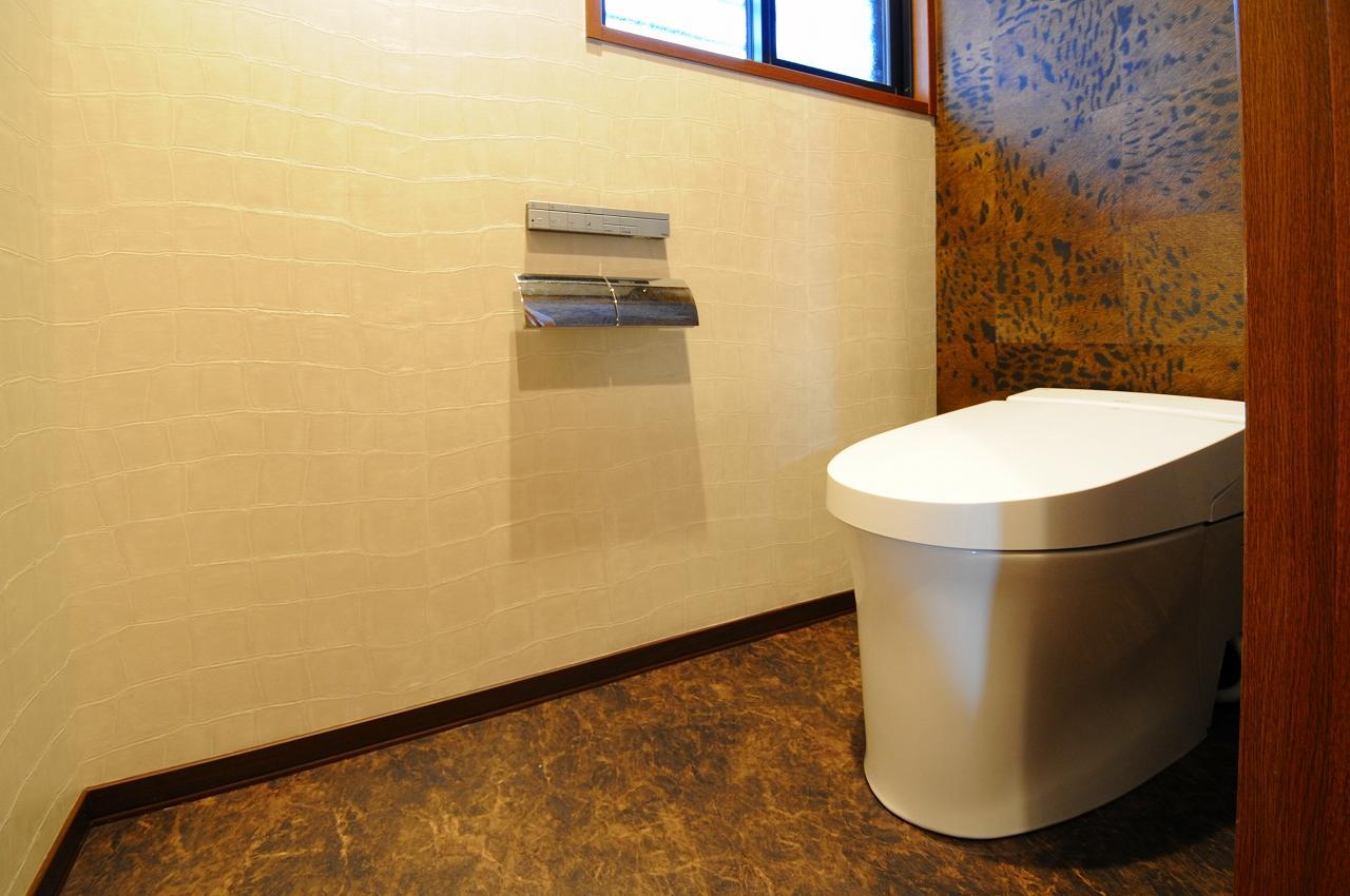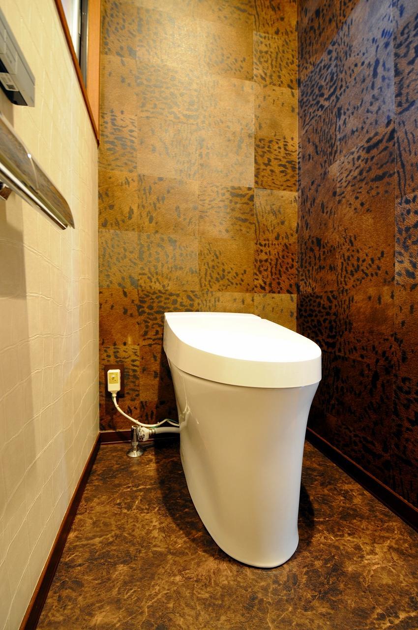 お客様のセンスが光るこだわりのトイレ空間。ヒョウやワニのアニマル柄でハイグレードなトイレ空間を演出。